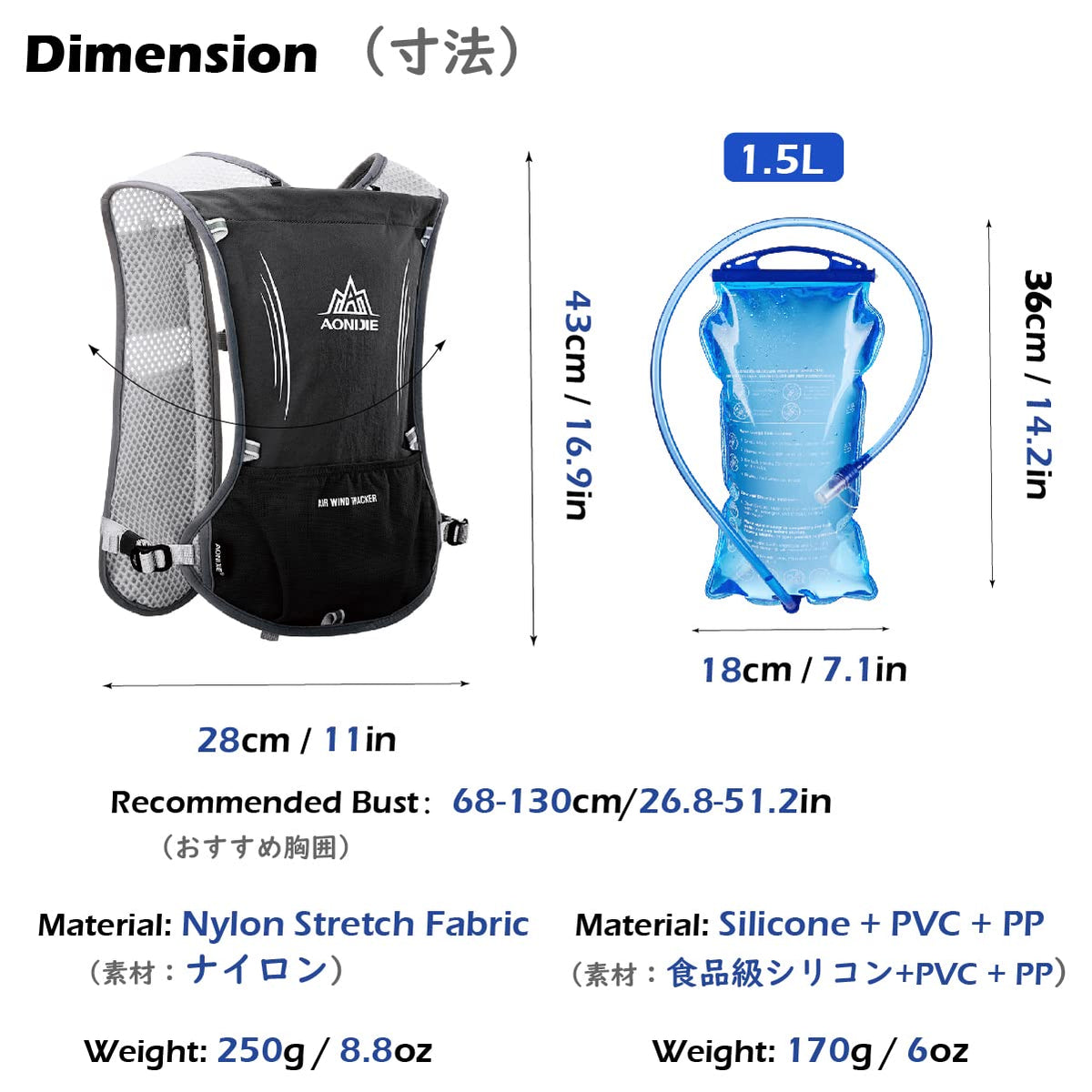 Triwonder Hydration Pack Backpack 5L Marathoner Running Race Hydration Vest (Black - With 1.5L Water Bladder)