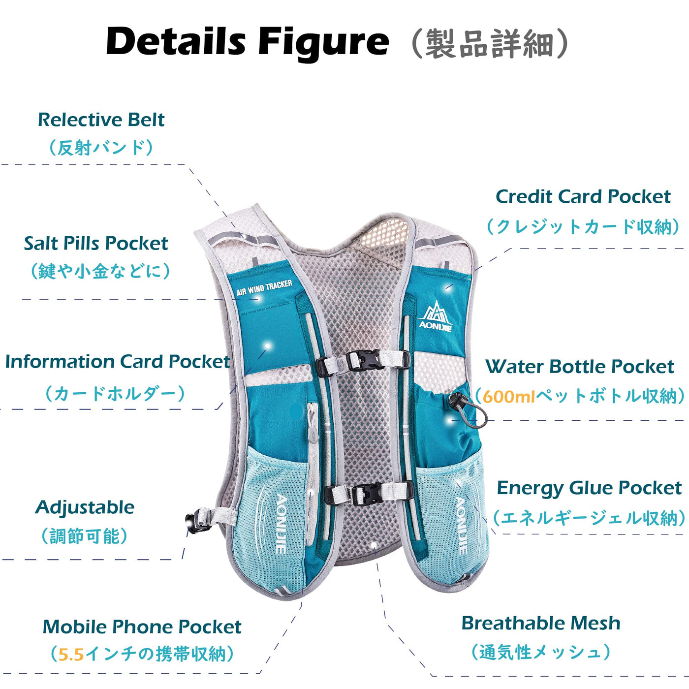 Q: What materials are used in the construction of the hydration vest?A: The hydration vest is made from a combination of polyester net and nylon elastic fabric, offering durability and comfort during use.