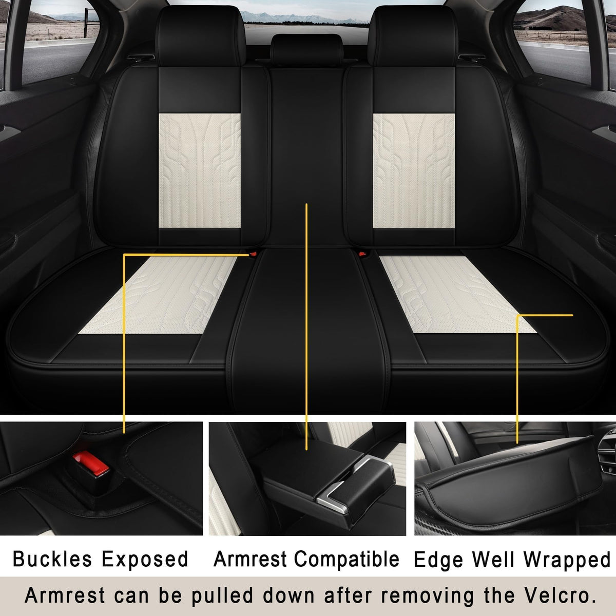 Ttmiku Leather Car Seat Covers, Waterproof And Breathable Automotive Seat Covers, Luxury Car Seat Covers For Most Cars Suv Truck Sedan, Universal Anti-Slip Seat Cover (Full Set, Milk White+Black)