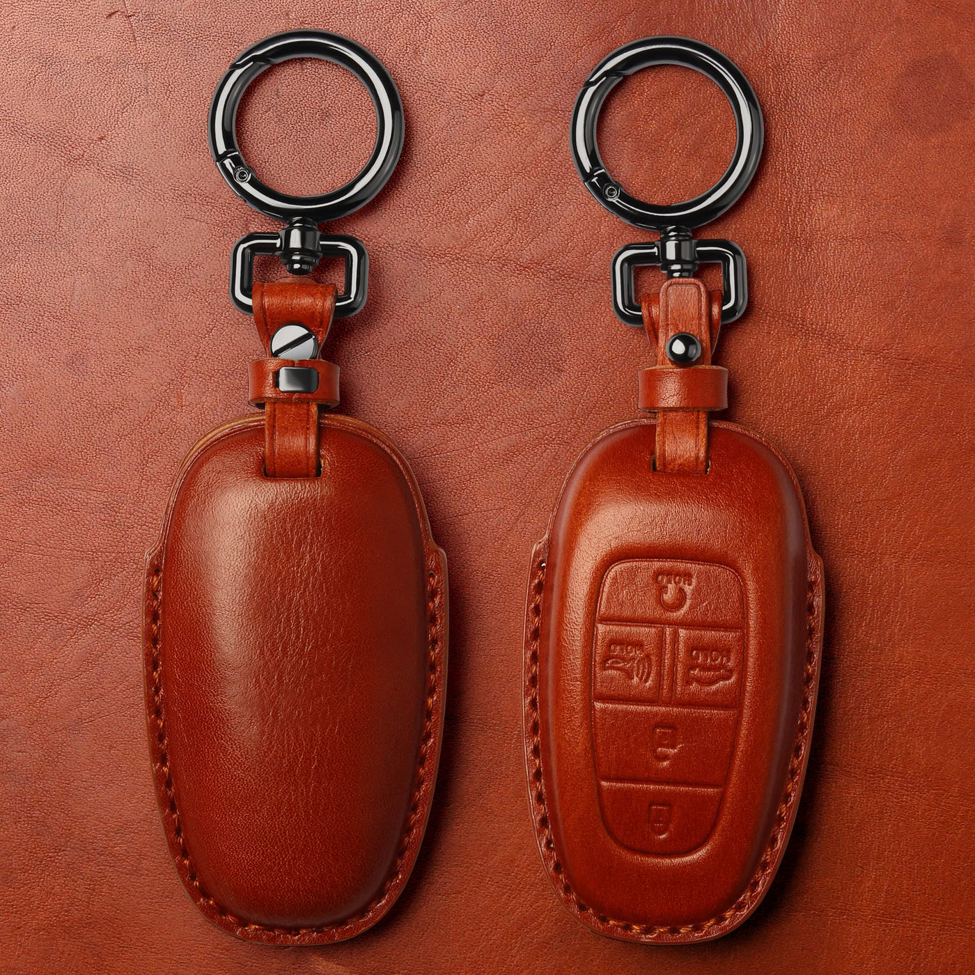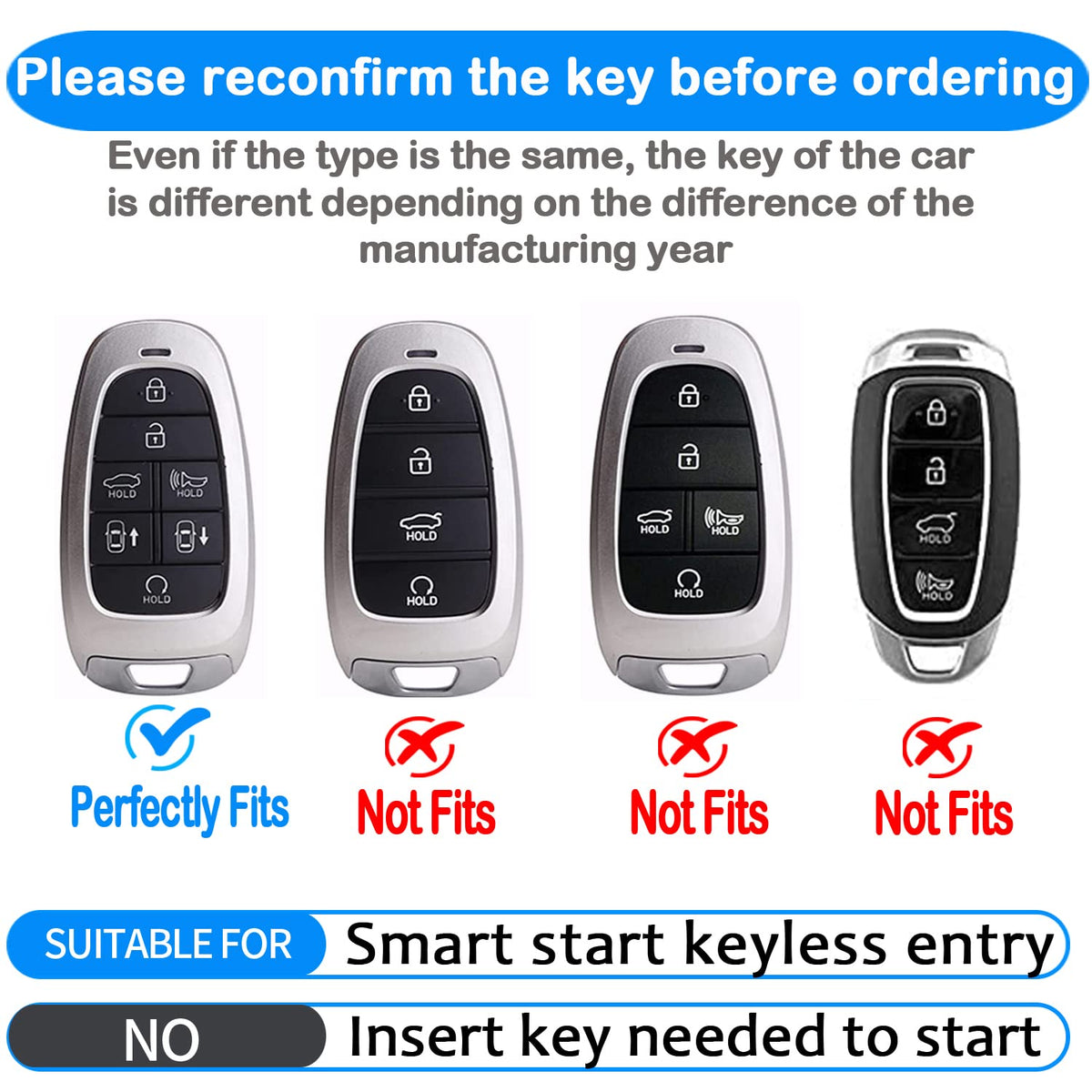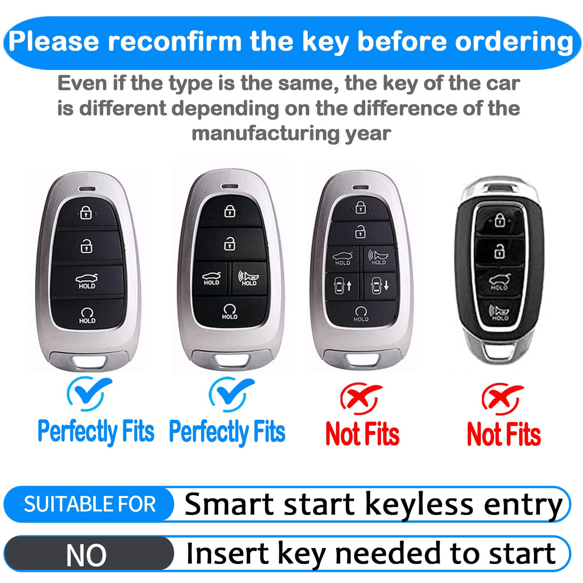 Fits Model:Compatible With 2020 2021 Sonata,2022 Tucson Smart 4-5 Buttons keyless entry remote control smart key. | Note: Even though the car model is the same, but the car key might be different based on the different year of manufacturing, so please Double Check your Key Fob with the picture at left before Purchasing. | Material:The key case Made with high-quality Genuine leather whice is healthy and safety for you. Excellent touch feeling and stylish. Pretty durable and the beautiful color make your key stand out and never mixup with others. | 360 Degree protection: Comprehensive protection to prevent keys from being scratched and worn,this key protector will not affect the key signal. | After-sales:If there are any defects or quality problems, Tukellen provides free replacement or refund of the product. Please feel free to contact us if you have any questions, and we will provide a satisfactory answer.