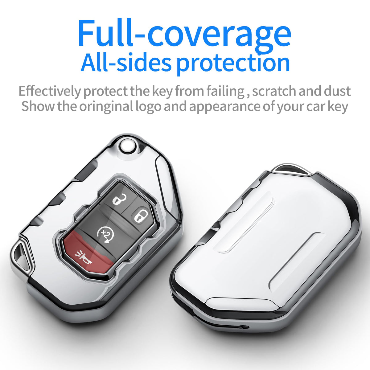 Tukellen For Jeep Key Fob Cover Premium Soft Full Protection Key Shell Key Case Compatible With Jeep 2020 2021 Gladiator Jt Sahara Jlu 2018-2021 Jeep Wrangler Jl Jlu Rubicon(Silver)