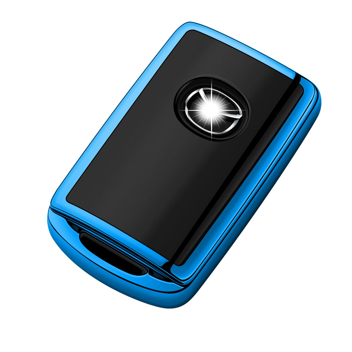 Tukellen For Mazda Key Fob Cover 360 Degree Full Protection Key Case Key Shell Compatible With 2019-2024 Mazda 3, Mazda 3 Hatchback, 2020-2024 Mazda Cx-5, Cx-30, Cx-9-Blue