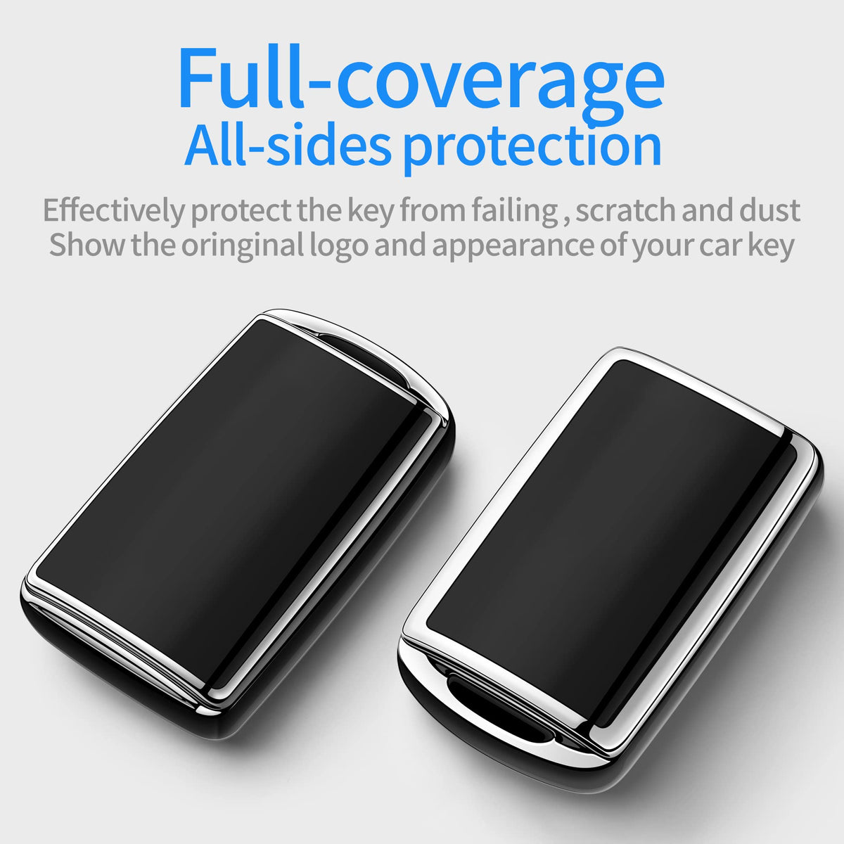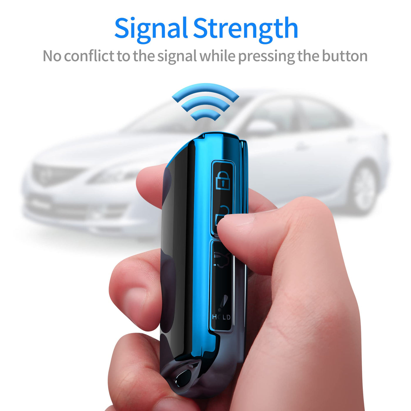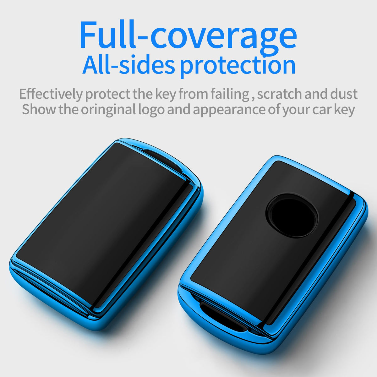 Fits Model:Compatible With 2019 - 2021 Mazda 3, Mazda 3 Hatchback, 2020 - 2021 Mazda CX-5, CX-30, CX-9, 3-4Button smart key fob. Please compare picture with your key fob before purchase. | Note: Even though the car model is the same, but the car key might be different based on the different year of manufacturing, so please Double Check your Key Fob with the picture at left before Purchasing. | Material: Using high-quality soft TPU material, new electroplating process. Add a frosted texture to the surface of the key cover. Perfectly fit the original smart key. | Particularity: 360-degree protection, matte texture. The shock absorption design protects your car keys from scratches. With the attached key chain, it is easy to carry. This key cover does not affect the signal, nor will it cover the original LOGO of the car key. | Worry-free purchasing: If you have any issues with this key case, please feel free to contact us through Amazon Message Center, a satisfying solution is promised.