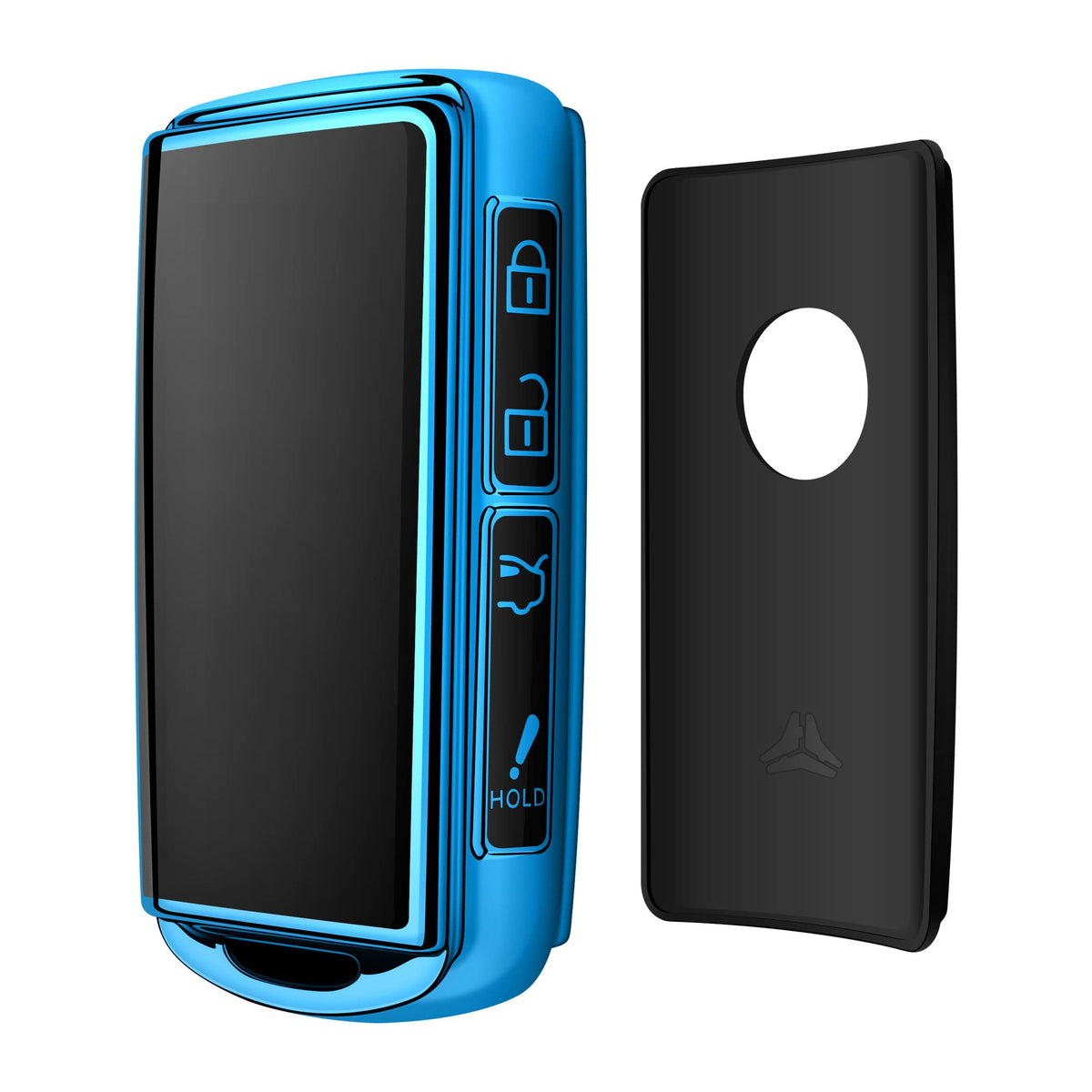 Q: What material is the Tukellen key fob cover made from?A: The Tukellen key fob cover is made from high-quality soft TPU material, which is known for its durability and flexibility. The electroplating process adds a frosted texture to enhance grip and aesthetics.