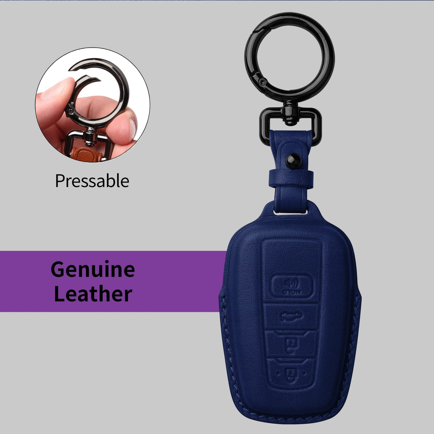 Q: What material is the Tukellen Key Fob Cover made from?A: The Tukellen Key Fob Cover is crafted from high-quality genuine leather, providing both durability and a stylish look. This material is safe and offers an excellent touch feeling, making it a practical choice for key protection.