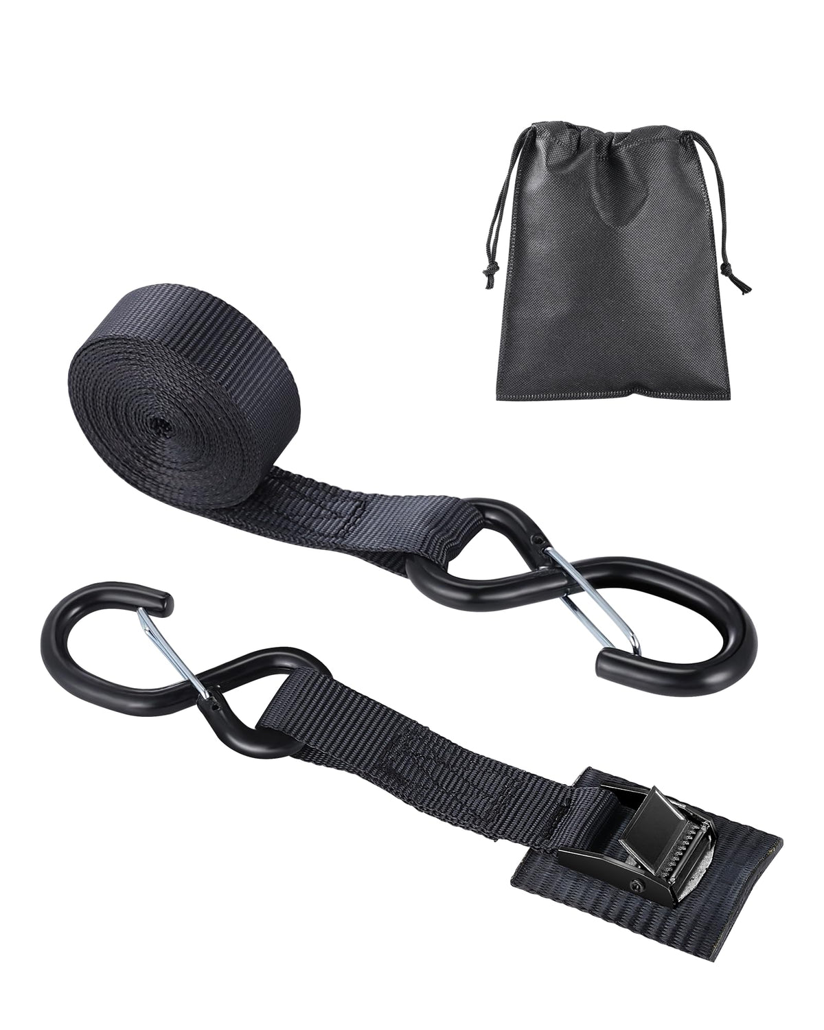 Upgraded 1'' X 8' Tie Down Straps, Cargo Roof Rack Strap Cam Buckle With Hooks, Heavy Duty Secure Strap, Black - Pack Of 2
