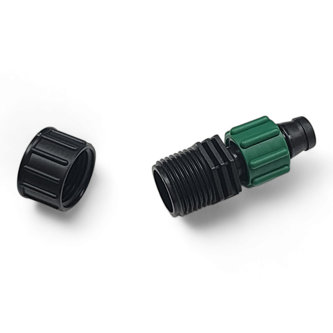 UNIVERSAL LOCKING DRIP FITTINGS : 5/8" - 1/2" or .625" - .645" Barbed Fittings FIT MOST MAJOR BRANDS 1/2” DRIP TUBING : Barbed Drip Fittings with twist lock are used in the installation of drip line with .600 ID x .700 OD drip tubing. Used by home gardeners and professional alike, these fittings are made of high-impact plastic, and are available in a variety of configurations. Using a barb, two pieces of drip line or drip tubing may be pushed over the barbed sides of the fittings for a very tight fit. Features Special, extra lock twist and barb design for secure and easy installation without glue or clamps Fits brown or black drip tubing, PC drip line and polyethylene drip tubing with 5/8" - 1/2" or .625" - .645" - QUALITY CONSTRUCTION - Made of high-impact, high-strength, UV-resistant plastic for extended operation in harsh conditions Available in a variety of configurations Products specifications Operating pressure: up to 30 PSI