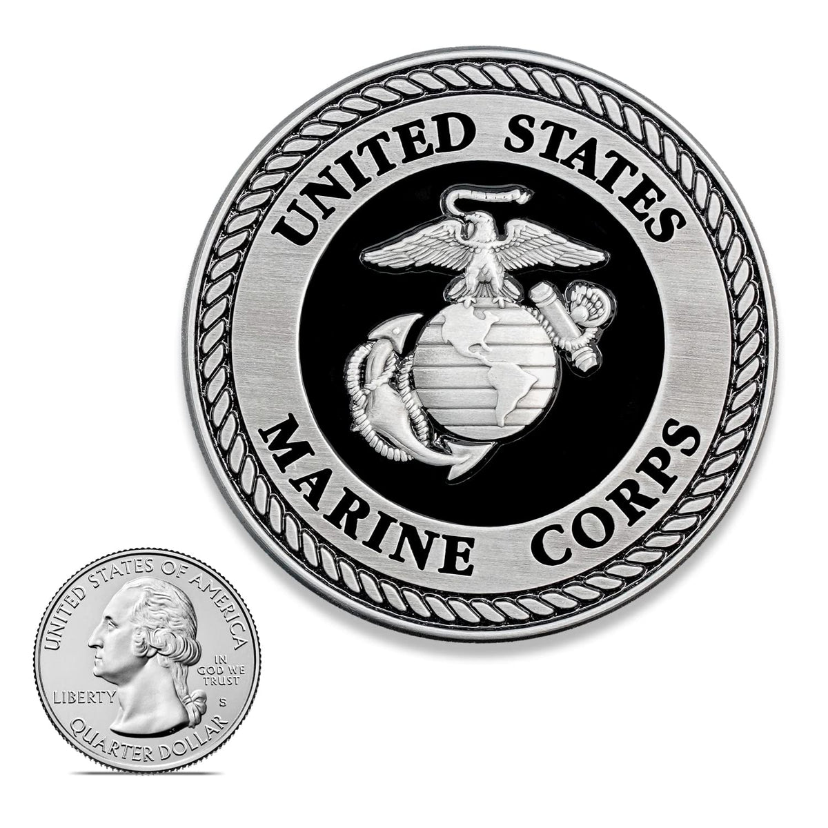 Usmc Medallion - 2.25 Inches - Black And Silver Marine Corps Ega Eagle Globe Anchor Emblem