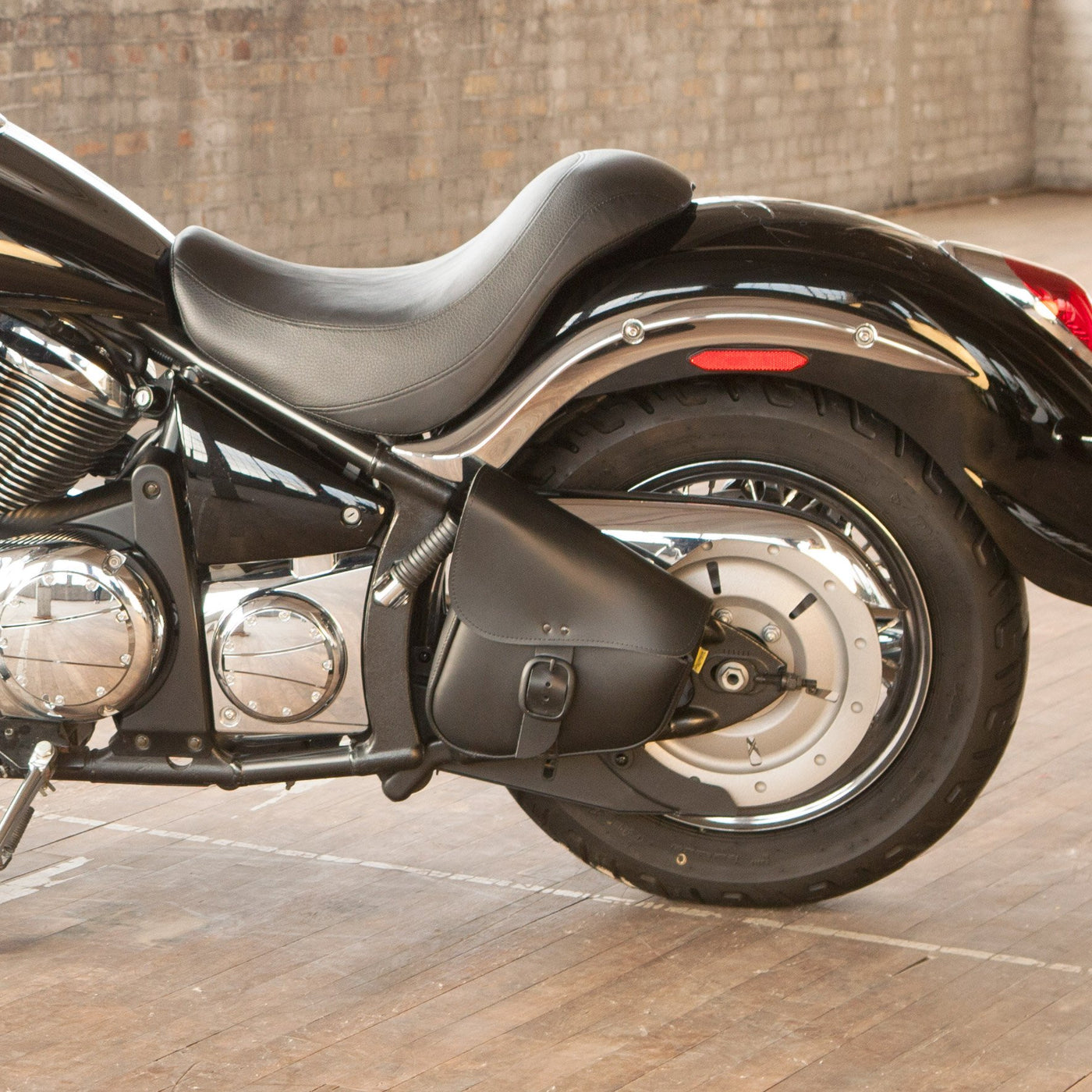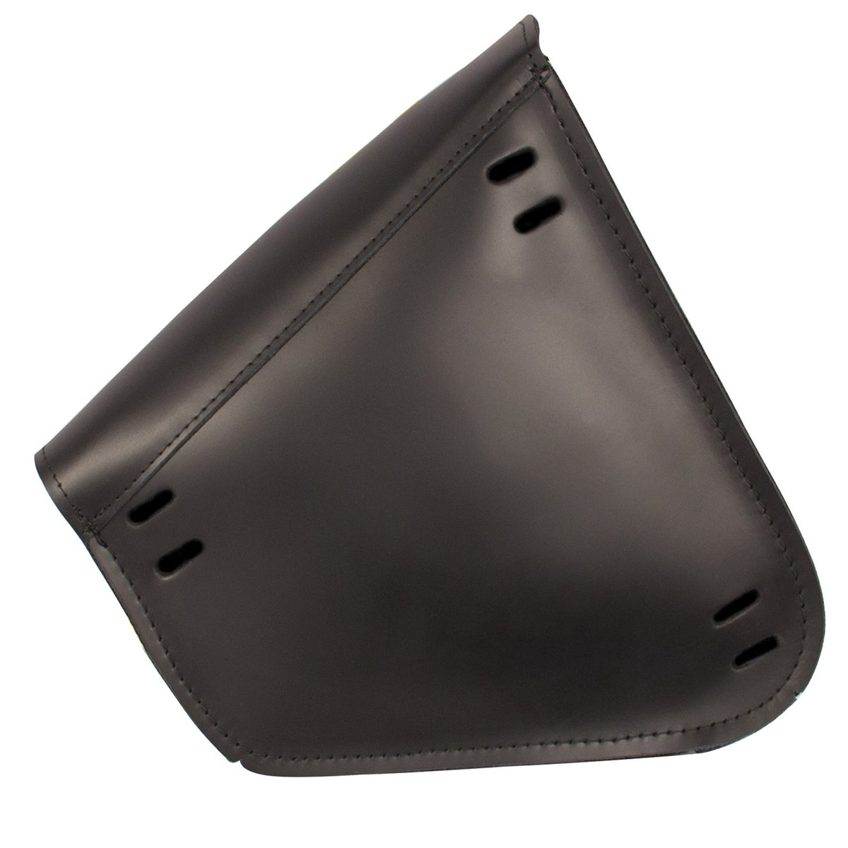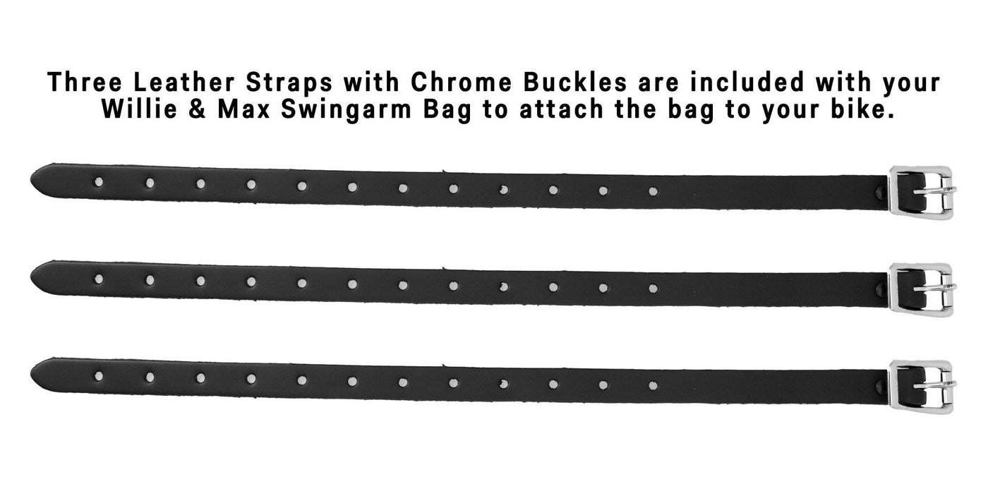 This subtle, blacked out swingarm bag has the perfect amount of space for your essential gear. Made with 100% leather with added magnetic securing attachment. Easily mountable with slotted access points and three included leather mounting straps with chrome buckles includes two pieces of protective film to keep the swingarm or frame from being scratched. All of the products are both designed and manufactured in the USA. Willie & Max has earned its wings as the authentic American riding brand, designing and crafting the highest quality saddlebags and gear on the road today. Limited Lifetime Warranty. Intended to be mounted on the Left Hand side of the bike. Fits bikes with triangulated swingarm, with bag mounted on the Left Hand side. Ideal fitment for Harley Davidson Softails, Yamaha Road Star, Kawasaki Vulcan VN900 and Suzuki C50.