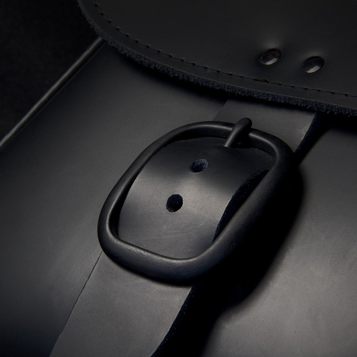 Willie & Max Black Leather Motorcycle Swingarm Bag for Softail/Triangulated Swingarm Models - Matte Black Buckle - Made in USA [59893-00]