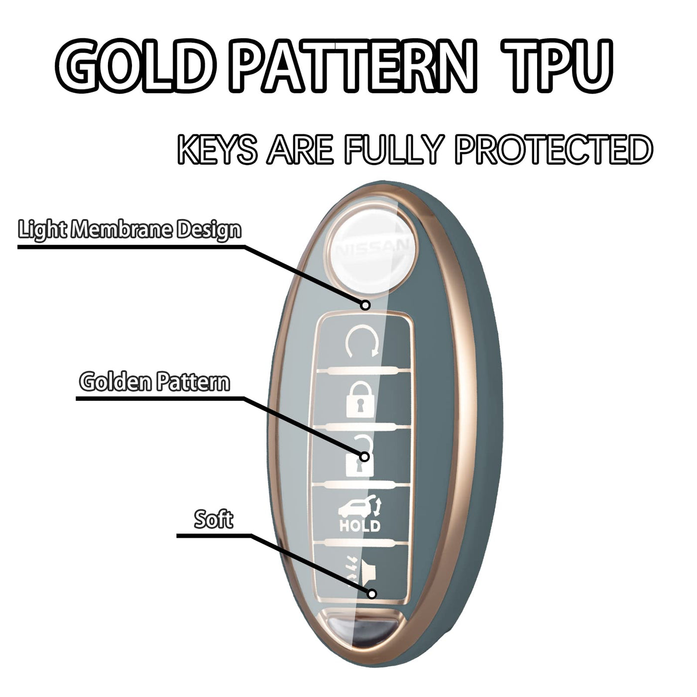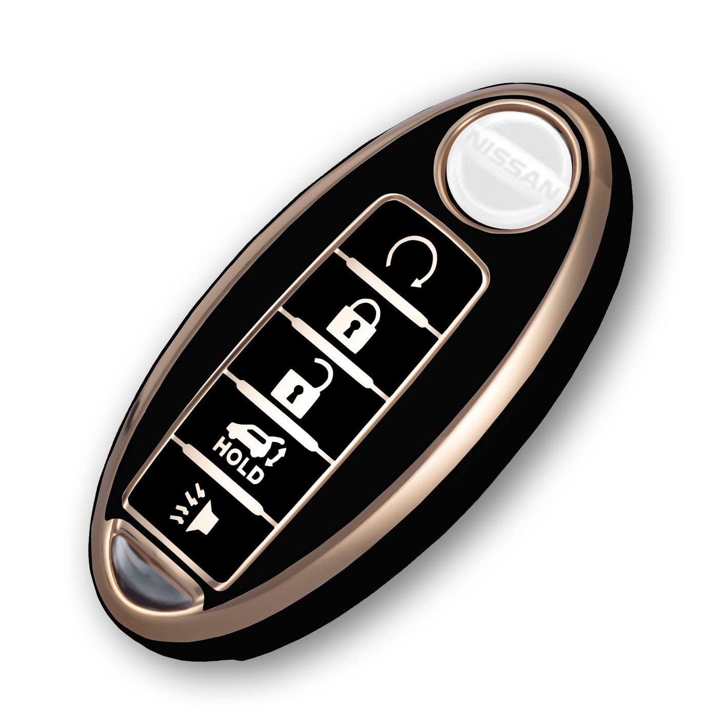 Worcas Compatible With Nissan Altima Maxima 5 Buttons Key Fob Cover,Premium Soft Tpu Smart Key Fob Case Compatible With Infiniti Jx35 Q50 Q60 Qx56 Qx60 Qx79(Black)