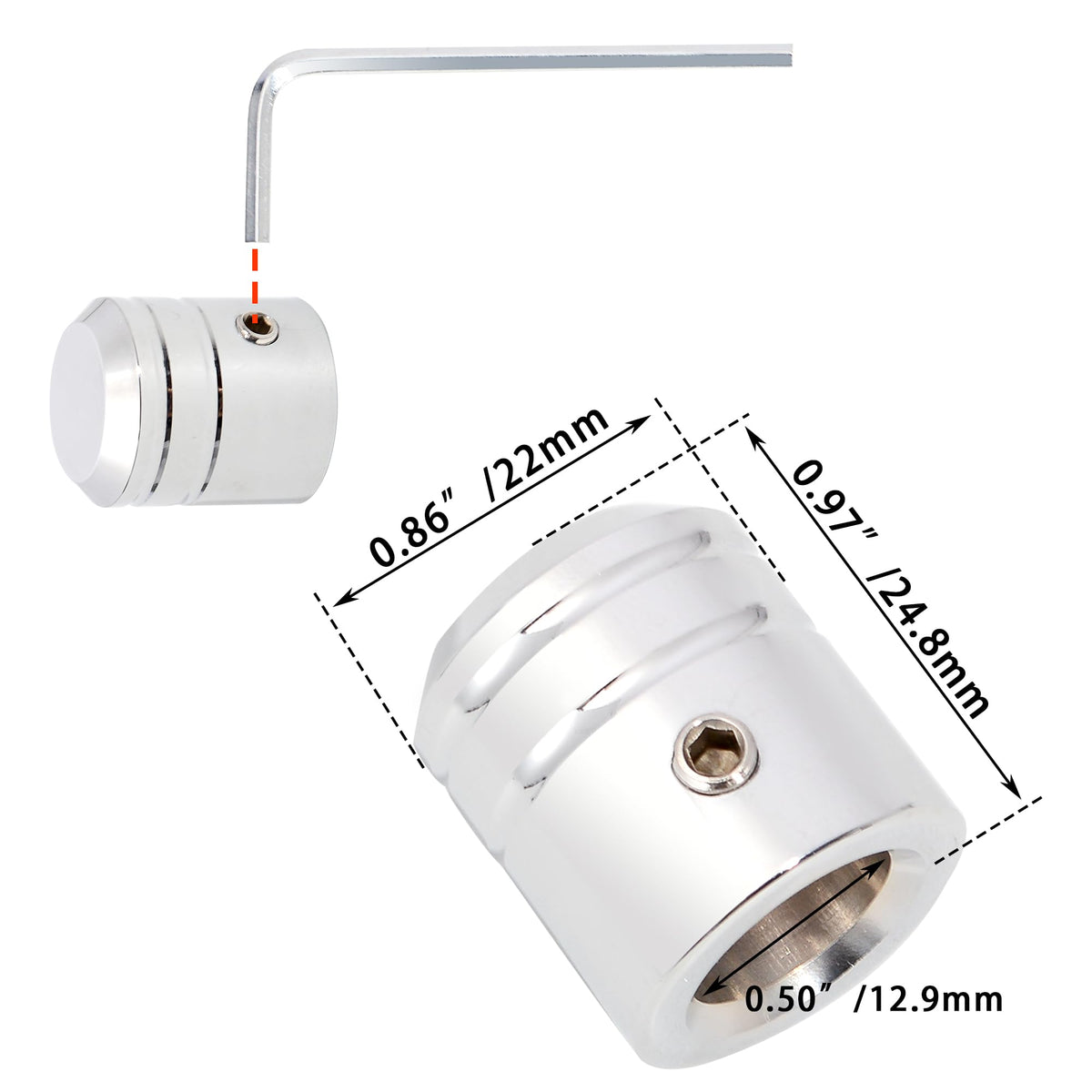 WOWTK Heel/Toe Shifter Shaft Cap Cover, Chrome, Metal, Fits Harley 1986-2017 FL Softail, 1988-2025 Touring, Model TK-G-0191