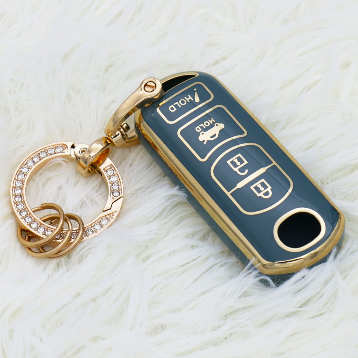 Wsauto For Mazda Key Fob Cover Soft 3 4 Buttons Tpu Protection Car Key Case Shell With Fashion Gold Bling Keychain Compatible With Mazda 3 6 8 Miata Mx-5 Cx-3 Cx-5 Cx-7 Cx-9 Smart Remote Keyless Blue