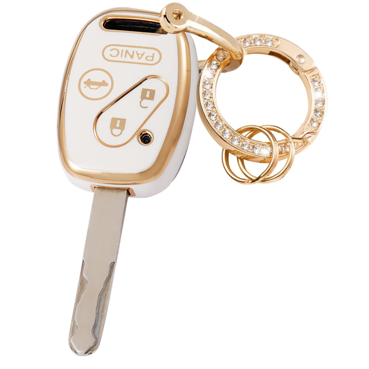 Wsauto Key Fob Cover With Metal Keychain Compatible With Honda Accord Civic Ex Pilot Cr-V Accessories Soft Tpu Protection Case Shell White