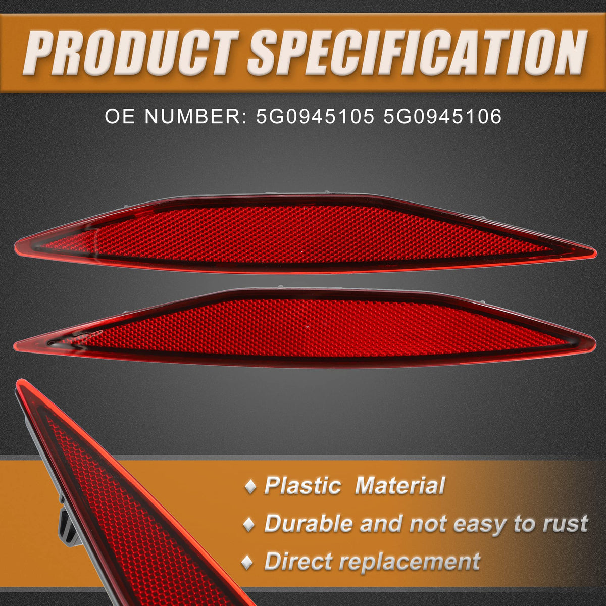 X Autohaux 1 Pair Rear Left Right Bumper Reflector Light Cover 5G0945105 5G0945106 For Volkswagen Golf 1.8L M/T S Hatchback 2015 Red
