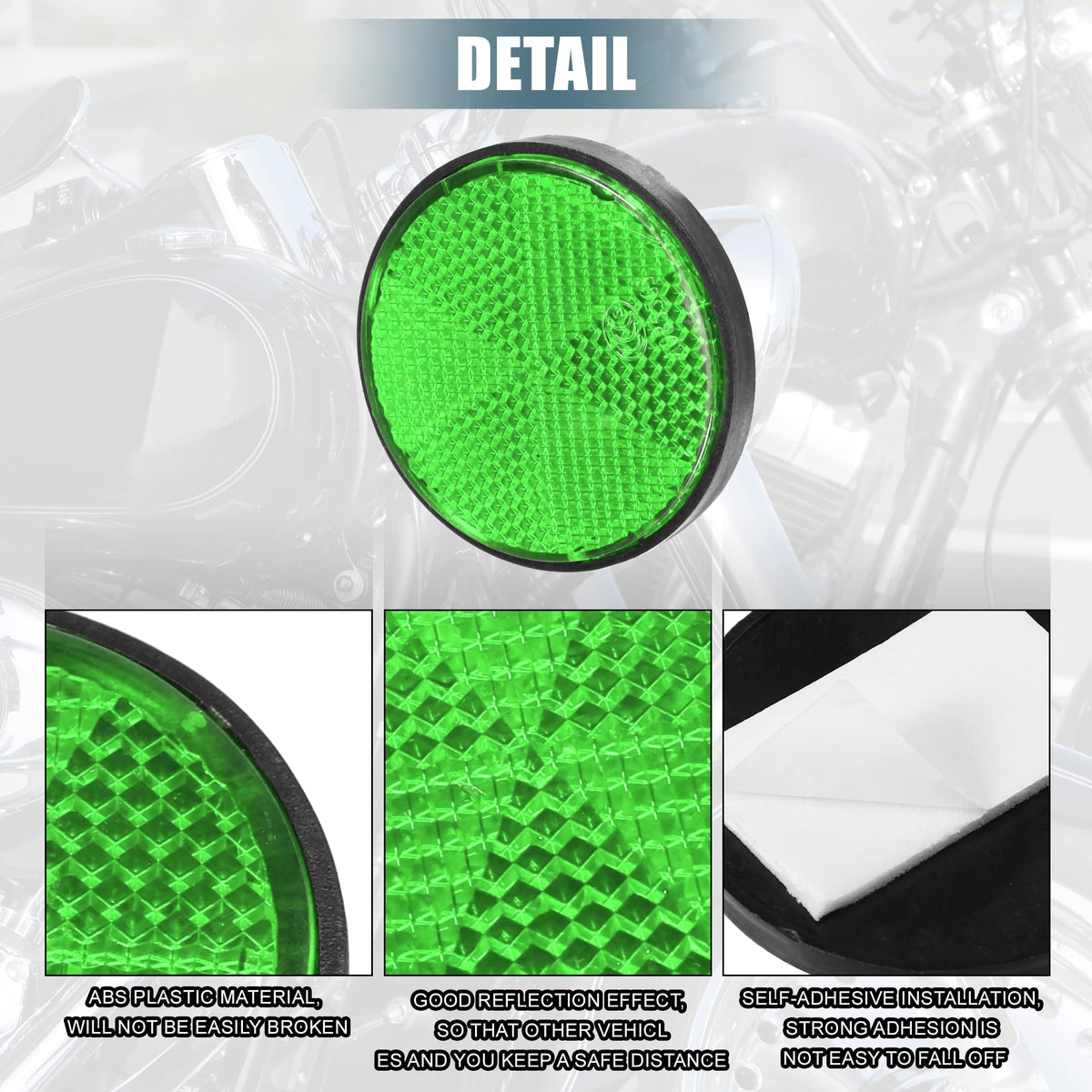 Features:The reflective light from sticker can increase other drivers attention at night, effectively prevent traffic collision.Made of durable ABS plastic with fade resistant feature, no problem for hot summer and cold winter.Easy to Install, simply peel off the double-side adhesive tape and stick it in place, no extra tools are needed.Specifications:Material: PlasticColor: GreenSize: 56mm / 2.20''(D)Package Included:10 x Universal Reflector