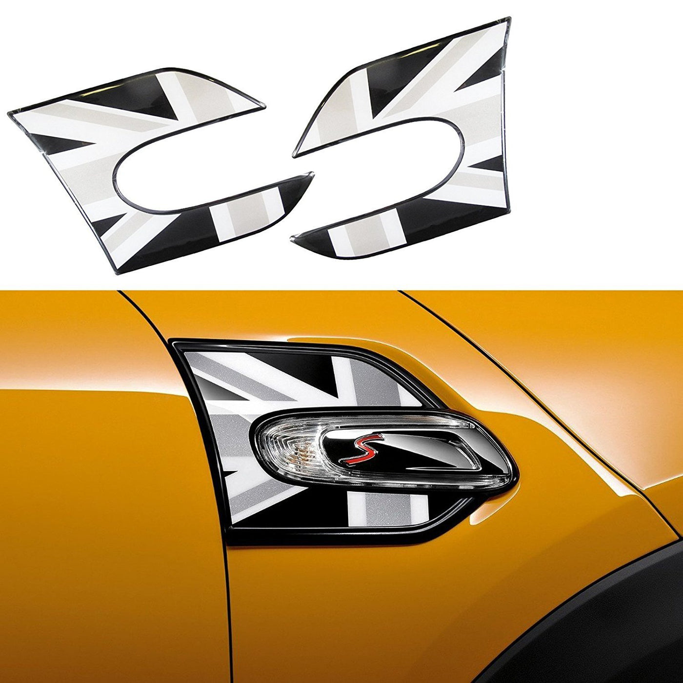 Xotic Tech 2X Side Exterior Fender Scuttles Union Jack Style Decal Stickers Replacement Decoration Accessories,Compatible With Mini Cooper F55 2015+,F56 2014+(Black)
