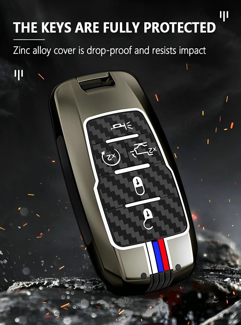Yonufi For Ram Key Fob Cover Case Metal Shell Smart Key Holder Protector Compatible For 2019-2024 Dodge Ram 1500 2500 3500 (Ra5-Carbon Fiber)