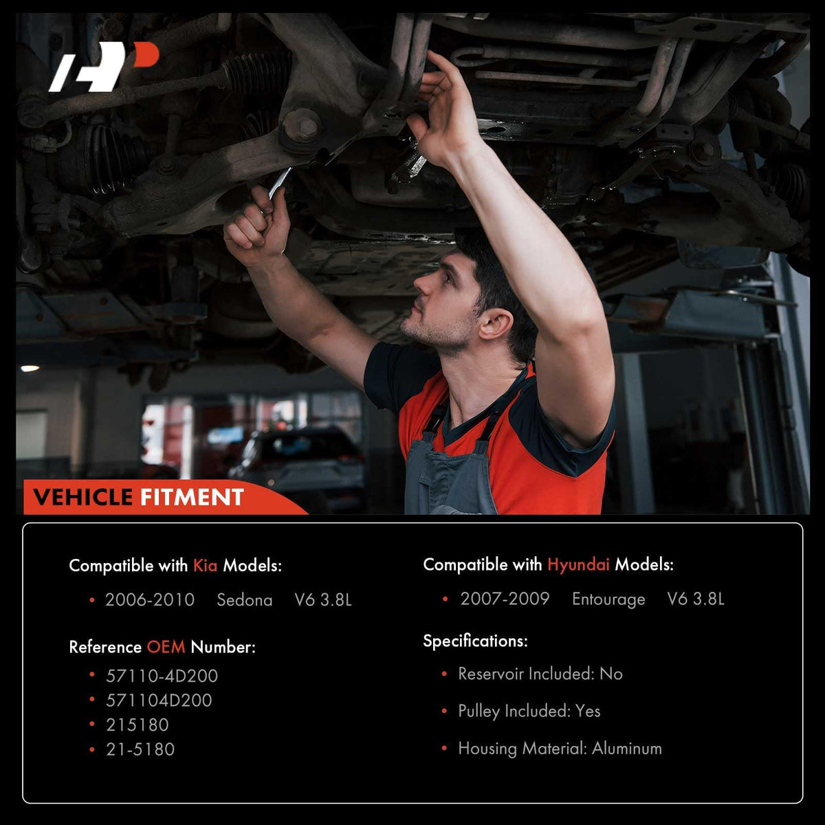 Application: Compatible With Kia Sedona 2006-2010 V6 3.8L Mini Passenger Van Without Pulley And Reservoir Compatible With Hyundai Entourage 2007-2009 V6 3.8L Mini Passenger Van Without Pulley And Reservoir