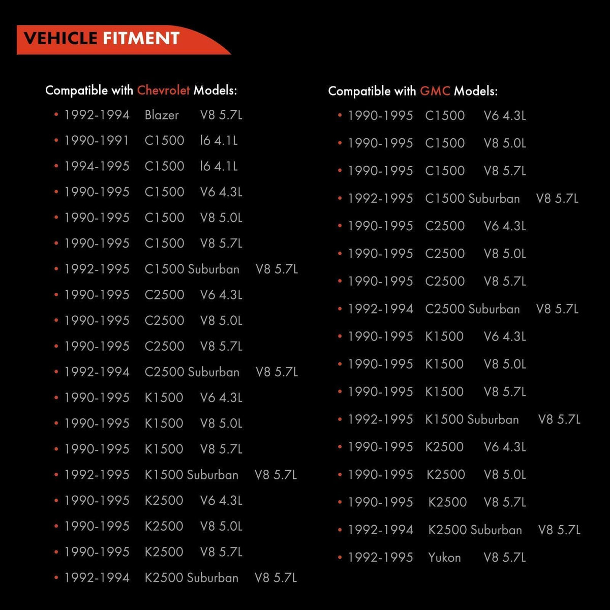 Q: What vehicles are compatible with the A-Premium Power Steering Pump?A: The A-Premium Power Steering Pump is compatible with various Chevrolet and GMC models, including C1500, C1500 Suburban, C2500, K1500, K2500, Blazer, and Yukon from 1990 to 1995. For Chevrolet, it supports engines such as the V6 4.3L and V8 5.0L/5.7L, while for GMC models, it accommodates similar engine types.