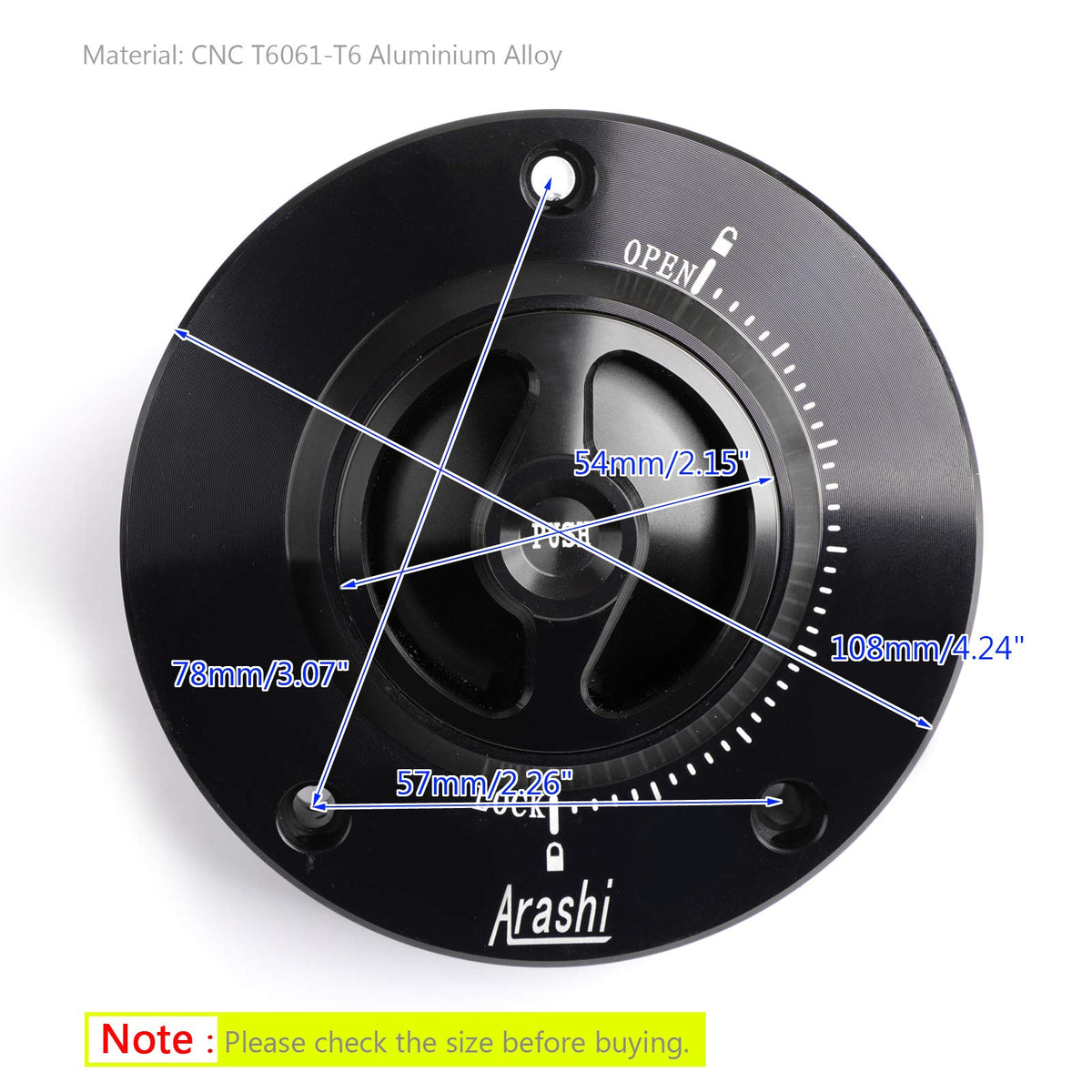 Features: Perfect Anodized Surface Treatment. Enhance The Look Of Your Bike With This Lightweight Fuel Cap. Direct Bolt On; Easy Installation, No Modification Required. Keyless, Only Push The Center Button And Turn Left To Open. Cnc Aluminum,Light Weight, High Strength And Durable. The Latest Custom Design With Edge Cutting Handles. Easy To Install,Installation Instruction Is Not Included.