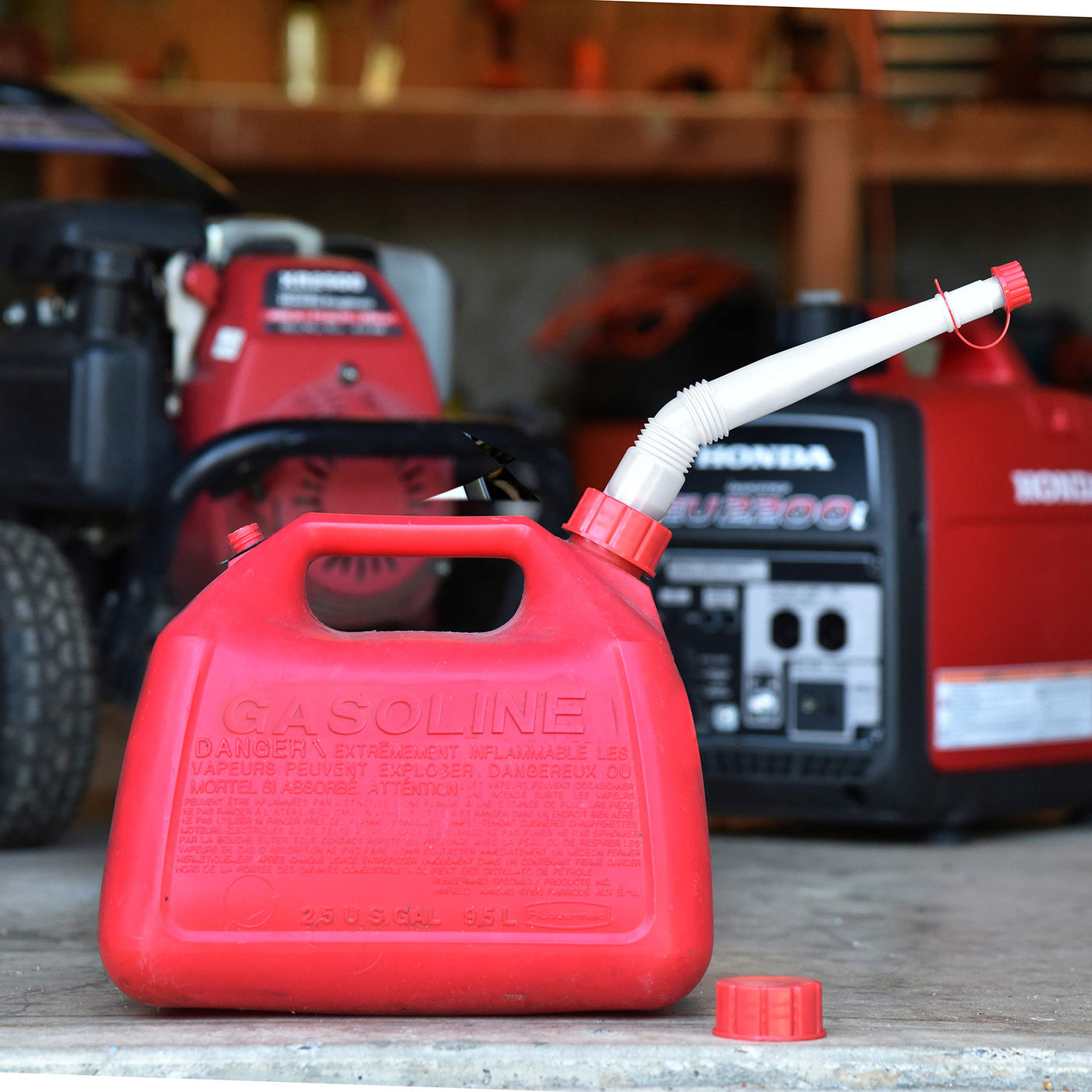 Q: How does the spill-free design of the spout work?A: The spout features a unique long, angled design that allows for easy pouring without spills. This design ensures that you can pour fuel or water into your lawn mowers, vehicles, or other gas-powered equipment at any angle, reducing the risk of mess.