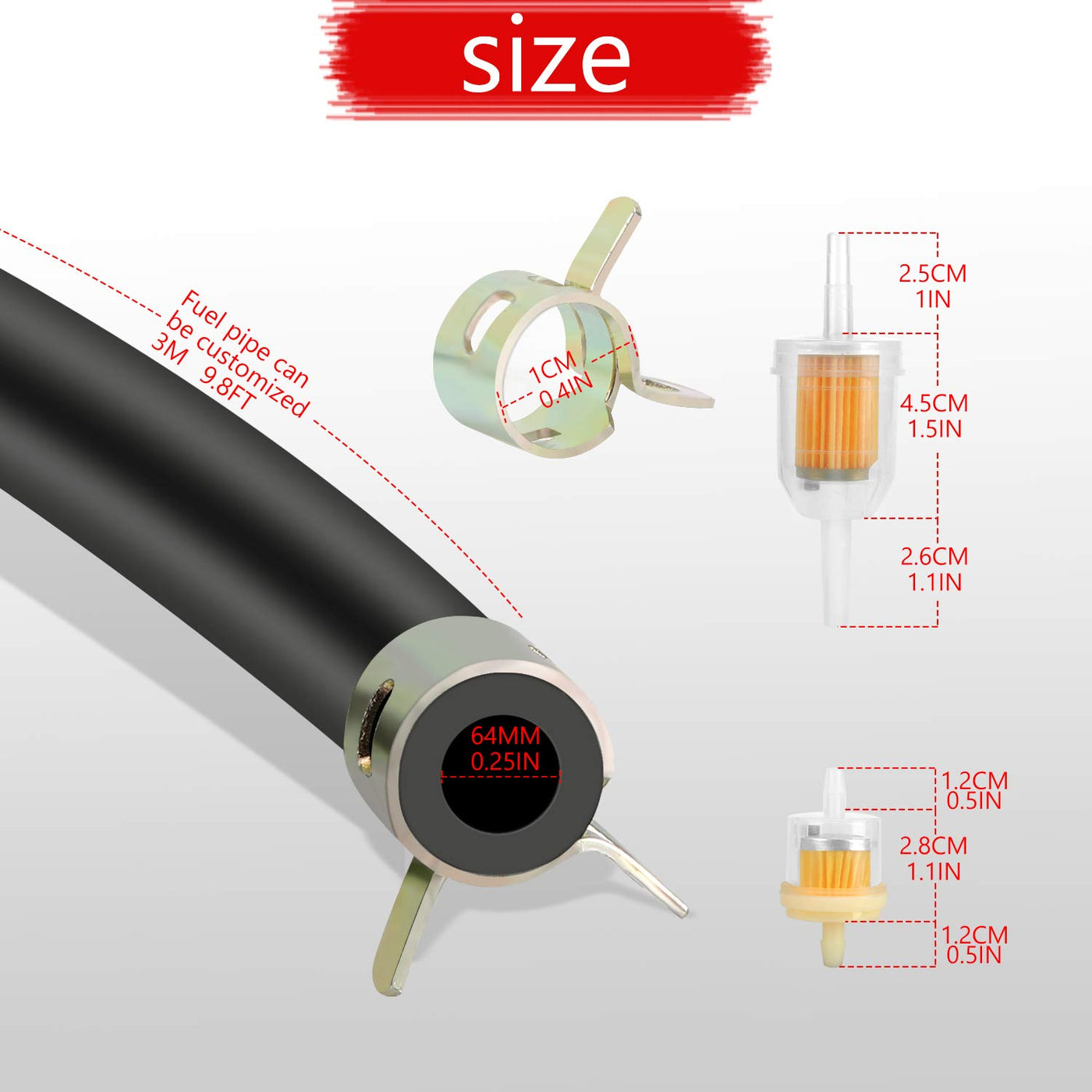 The Cocomocart 1/4 Inch Id 10-Foot Bag Fuel Line Is Ideal For Use As A Replacement Hose In Your Small Engines.Or Anything That Requires A Fuel Line. The Fuel Line Measures 1/4 Inch Inside Diameter (0.64 Cm) And Has An Outside Diameter Of 1/3 Inch (0.8Cm). The Extra Long 9.8 Foot Hose Can Be Cut To Lenght And Can Be Used For Multiple Projects. The Hose Is Made From Top Quality Rubber And Has A Psi Rating Of 60 At A Temperature Of 175 Fahrenheit ( 93 Degrees Celsius). Great For All Small Engines Including Lawn Mowers Snow Blowers Tractors Motor Bikes And Generators. Come With 20Pcs Hose Barbs And Clamps Together.