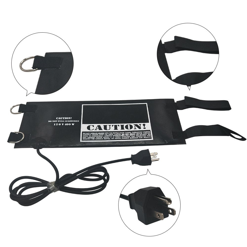 Silicone Material ,Heating Fast,Easy Installation | Thermostatically Controlled To Ensure Optimum Bottle Temperature | Fit For :10Lb,15Lb,20Lb Applicable Voltage:120 Ac Voltage 400W | Calibrated For Specific Pressure Ranges, Maximum Horsepower And Consistent Nitrous Flow For Engine Safety | Specifications:Length:15 3/4 Inch Width:6 Inch
