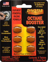 Track Tested To Be 9.2% Faster, Dyno-Tab Maximum Strength Octane Booster Provides Faster Acceleration. Adding The Correct Dosage At Fill-Up Can Give You A 10 Point Boost In Your Octane Rating And Additional Tablets Can Increase It 17 Points! Fast Dissolving And Safe For Catalytic Converters And Oxygen Sensors, Dyno-Tab High Performance Octane Booster Has Been Shown To Beat The Bottled Boosters In Independent Lab Tests. Please Follow Dosage Instructions On Package.