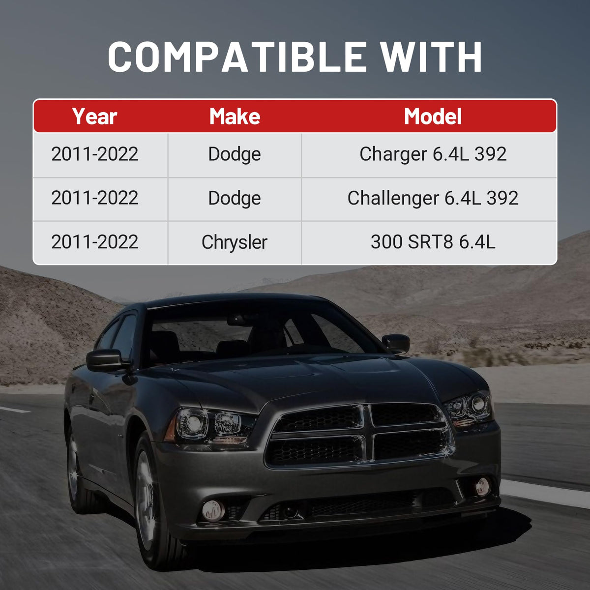 Q: What vehicles are compatible with the EVIL ENERGY Oil Catch Can?A: The EVIL ENERGY Oil Catch Can is compatible with the 2011-2022 Dodge Charger 6.4L 392, the 2011-2022 Dodge Challenger 6.4L 392, and the 2011-2022 Chrysler 300 SRT8 6.4L 392.