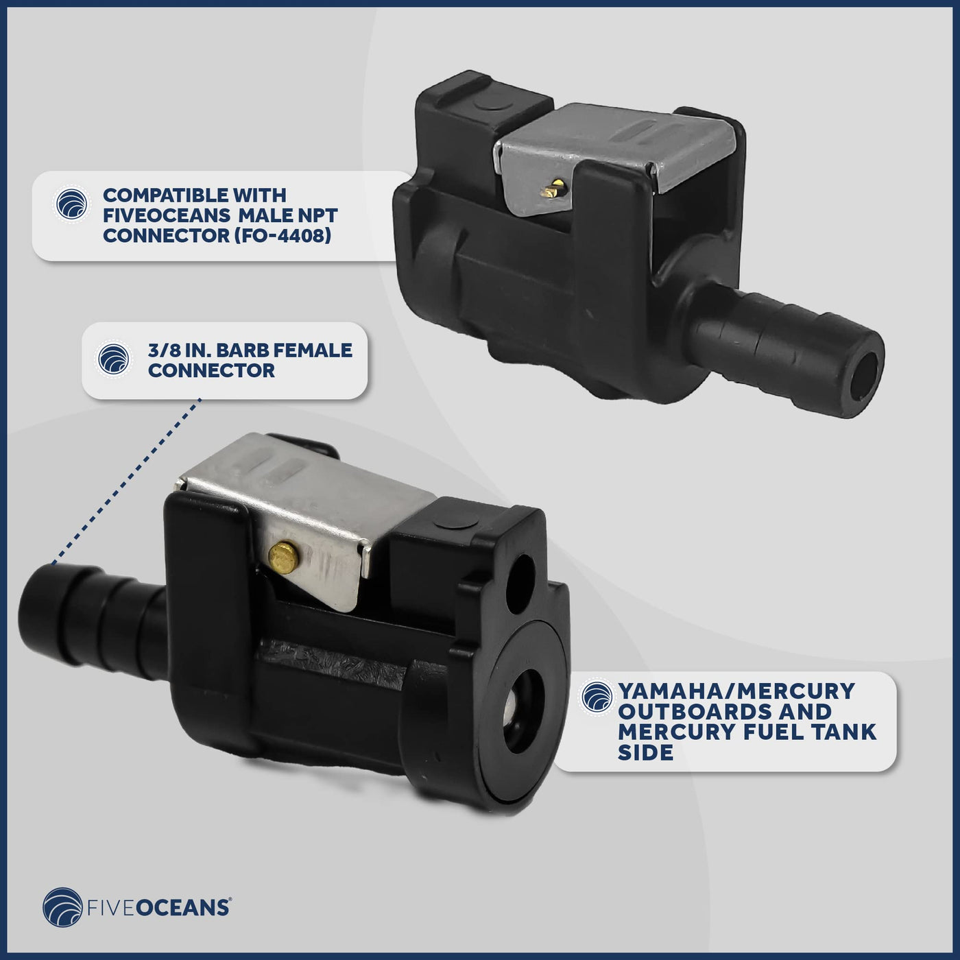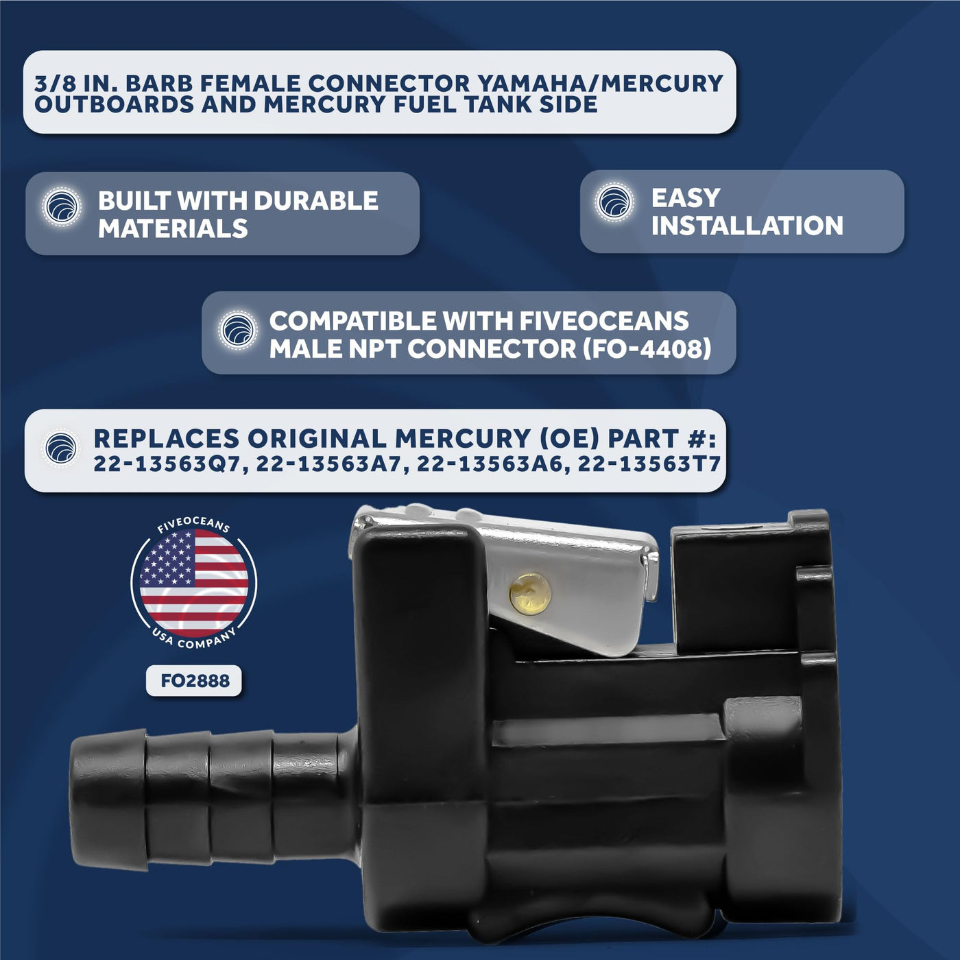 Five Oceans 3/8-Inch Barb Female Fuel Line Quick Connector For Yamaha/Mercury Outboard Connections And Mercury Fuel Tank Side, Replaces Part 22-13563Q7, 22-13563A7, 22-13563A6, 22-13563T7 - Fo2888