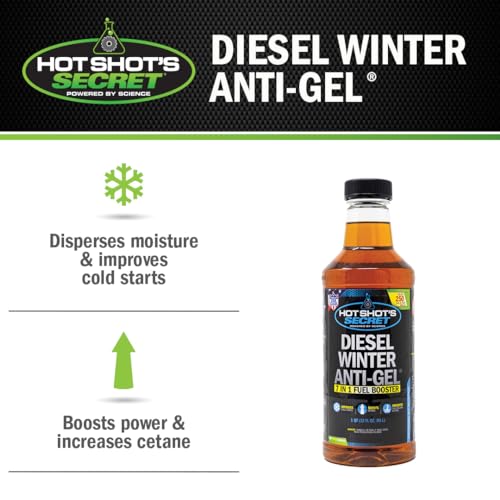 Hot Shot'S Secret Diesel Winter Anti-Gel Is Recommended For Use In All Diesel Engines To Provide Lubricity, Stability, Winter Operability, Detergency And Increased Cetane By 7 Numbers. Our Anti-Gel Fuel Stabilizer And Fuel System Cleaner Specifically Offers Winter Protection Against Freeze-Ups, Improves Cold-Temperature Performance And Contains A Powerful Cetane Booster For A Maximum Improvement In Performance, Power And Cold Start Speed. Add It To Your Fuel Tank Or Diesel Fuel Can To Prevent Wax Crystals From Forming In Cold Temperatures. If Your Semi-Truck, Pick-Up Truck, Tractor, Car, Or A Storage Tank Is Holding Diesel This Winter, Our Fuel Treatment And Diesel Cetane Booster Will Ensure That You Face Even The Harshest Weather With The Protection Your Diesel System Needs.