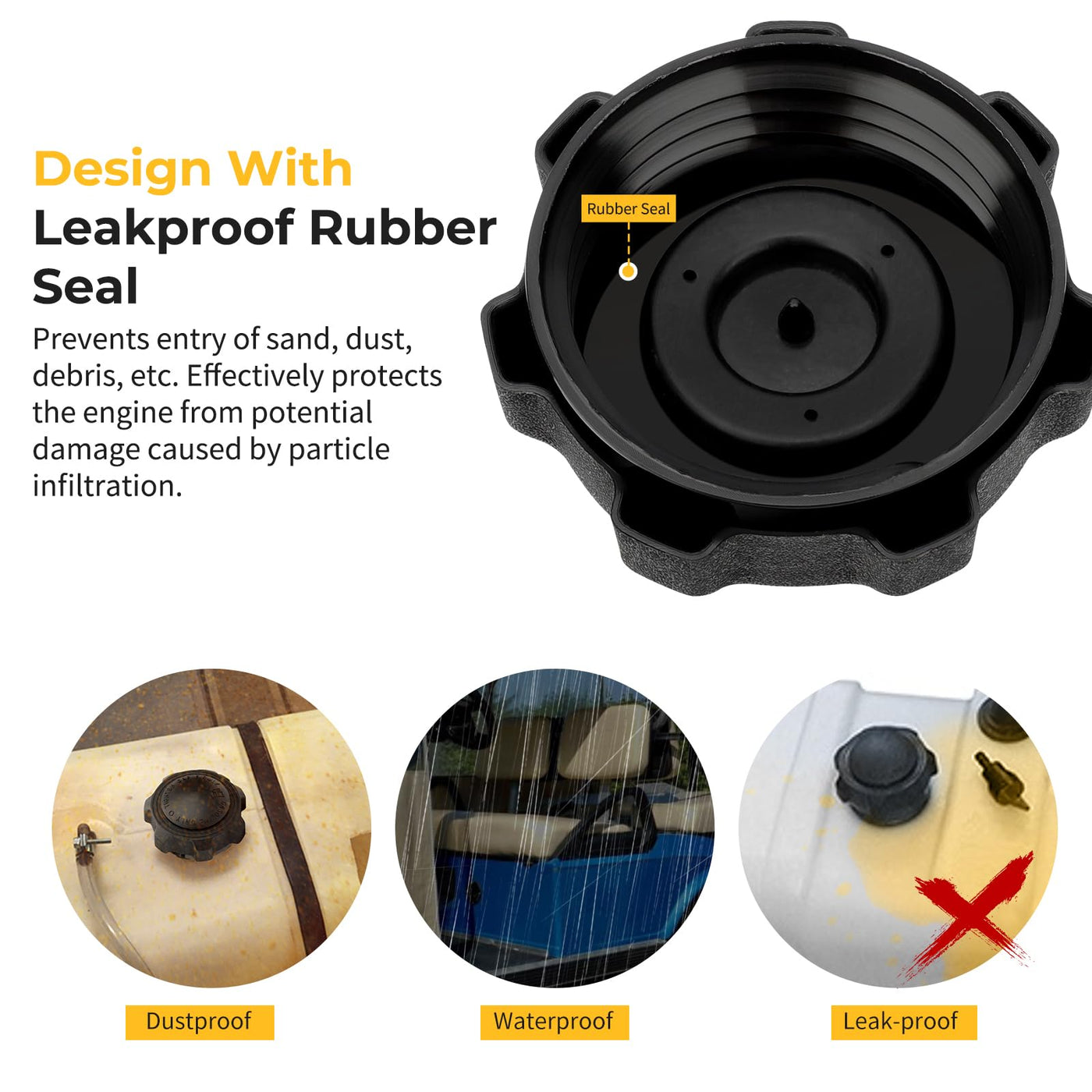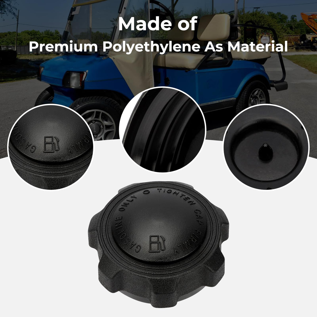 Q: How does this fuel cap enhance my golf cart's performance?A: This fuel cap enhances your golf cart's performance by providing a secure seal that prevents fuel leaks and contamination, thereby ensuring the efficient functioning of your gas-powered golf cart.