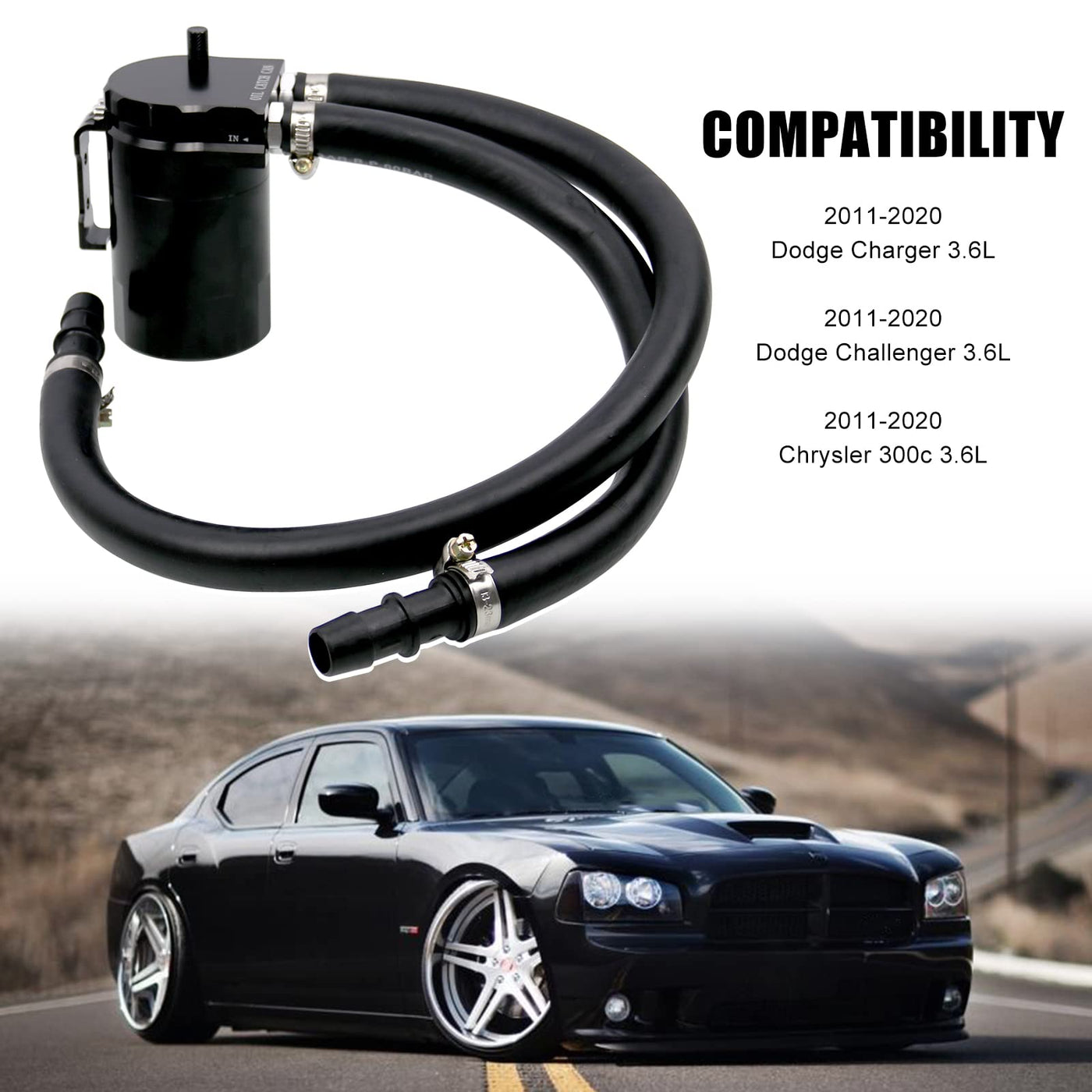 Description: 【Compatibility】Compatible with 2011-2020 Dodge Charger 3.6L Dodge Challenger 3.6L Chrysler 300c 3.6L. 【PRESERVE ENGINE LIFE&INCREASES HORSEPOWER】 The catch can will keep out the dirt and oil get inside your engine from your intake system. To keep engine clean , Increases horsepower and Preserve Engine Life. 【Installation】The oil catch can top mounting bracket allows mounting from multiple angles to fit your car, easy and convenient. 【400ML CAPACITY】- The capacity is 400ml,enough for daily use. 【FEATURE】It is fully Tig Welded and Thread Come with O-ring Gasket to Prevents oil leakage. Just need to unscrew the bottom part of the reservoir, easy to clean.And it's also very lightweight,very suitable for installation in your car.