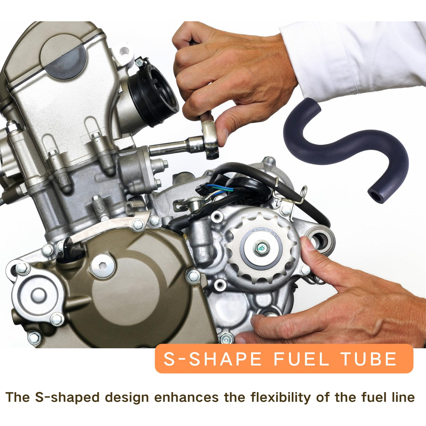 Q: What advantages does the S-shaped design offer?A: The unique S-shaped design of the fuel line enhances flexibility, allowing it to adapt better to the contours of your vehicle, which improves fuel delivery stability and reduces the risk of kinking.