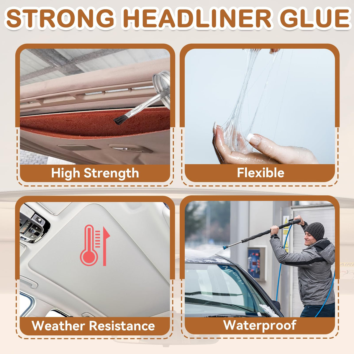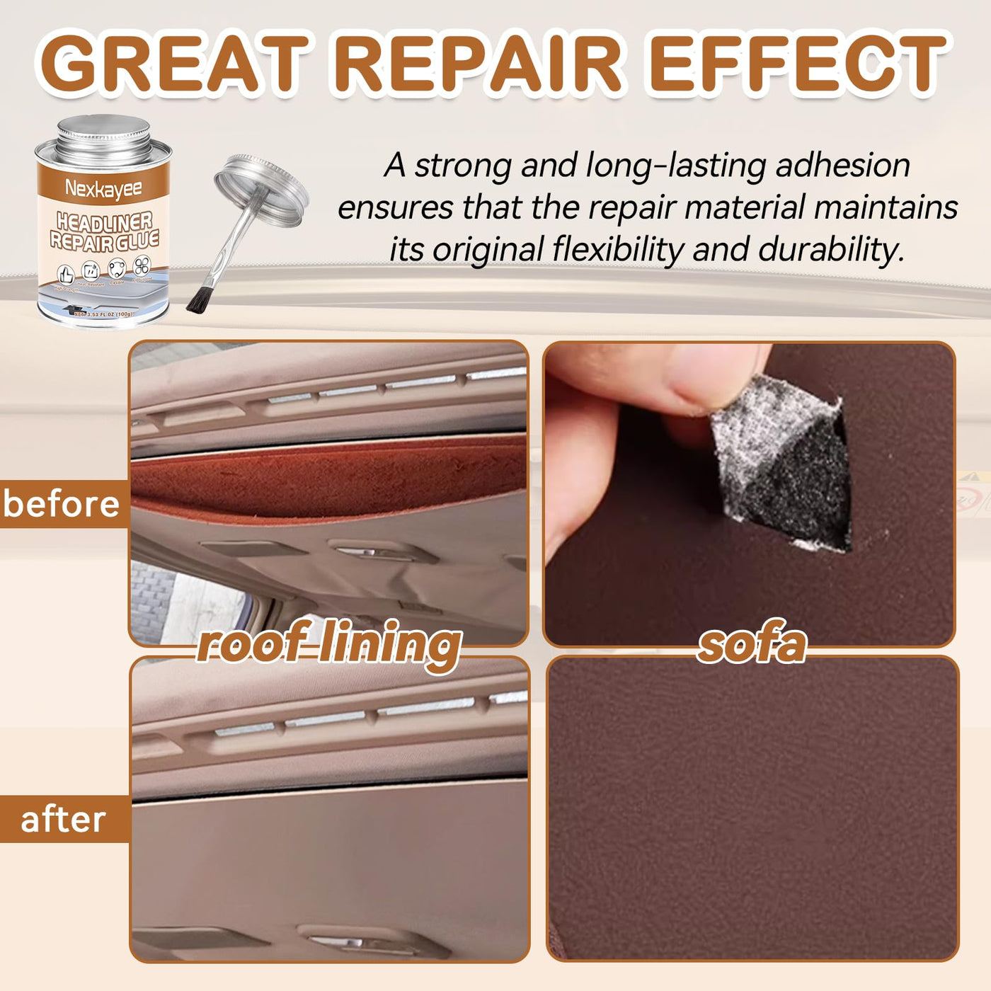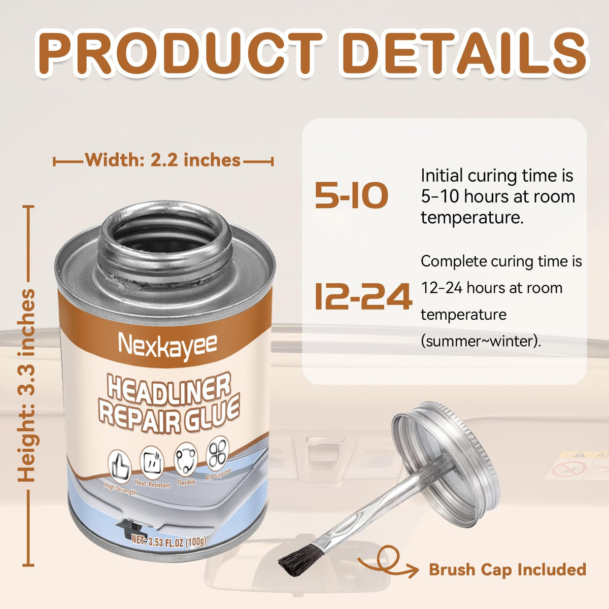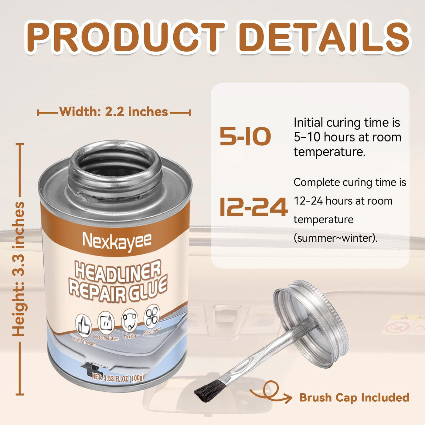 Nexkayee Headliner Repair Glue 100ml, Flexible Upholstery Glue for Cars, with Brush, Strong Car Roof Liner Adhesive for Repairin