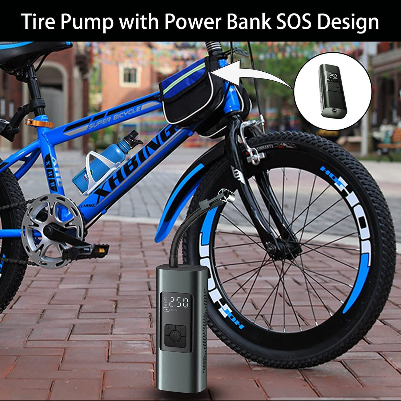 This handheld portable air compressor with auto pressure cut-out is ideal for emergency tire inflation for your SMALL car (for small cars only ),bike,the multi function enable you to use it as an inflator,a phone charger or a SOS signal light in the dark. Ideal gift for friends and Family ! Multipurpose: Tire Inflator Cordless for Car Bicycle Motocycles Balloons Balls and Other Inflatable 150PSI air compressor for cars bikes DC12V car cigarette power Tire pump with Pressure Gauge for cars 6000mAh Electric tire inflator air compressor Rechargeable Backpack Mini Tire Pump portable for cars Bicycles with Emergency LED Light Digital Tire Pump Auto-off, Power bank Can charge your phone