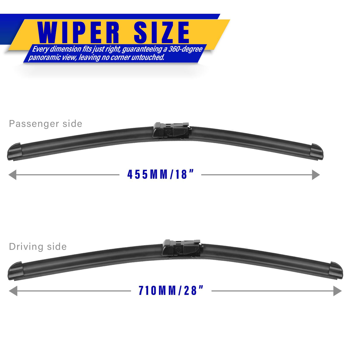 Q: What materials are used in these wiper blades?A: These wiper blades feature a hard-molded frame and a durable rubber material that ensures long-lasting performance, along with a stainless stronger spring for effective clearing of water and dirt.