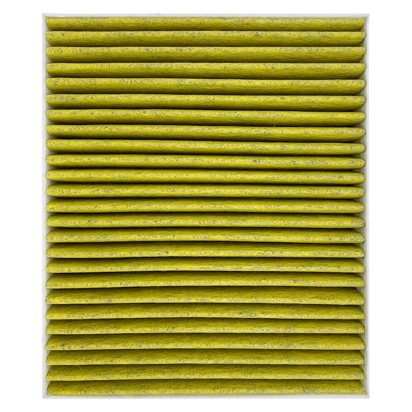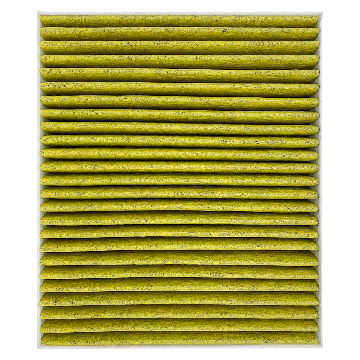 Q: What materials are used in the Capume Cabin Air Filter?A: The Capume Cabin Air Filter is made with a high-capacity melt-blown nonwoven layer, a HEPA filter layer, and nutshell activated carbon. This combination effectively traps dust, pollen, and other airborne contaminants while also reducing odors.