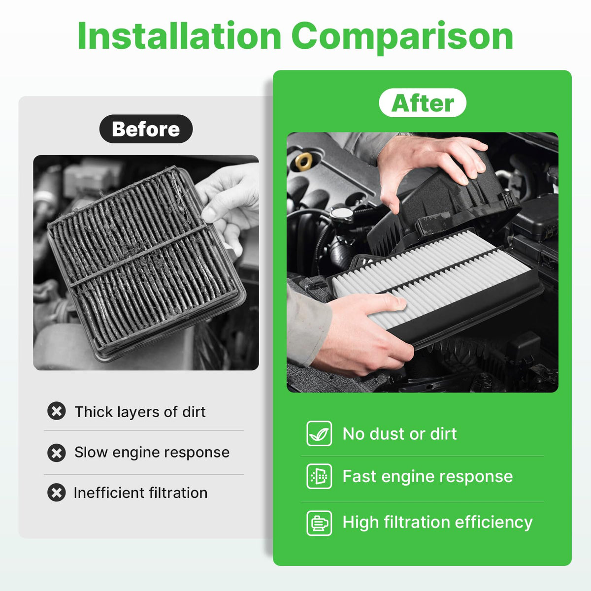 RVgolf 2PCS Engine Air Filter Only Fit Hybrid for Hyundai Santa Fe 2021-2023, Sonata 2020-2025, Tucson 2022-2025, Kia Sorento 20