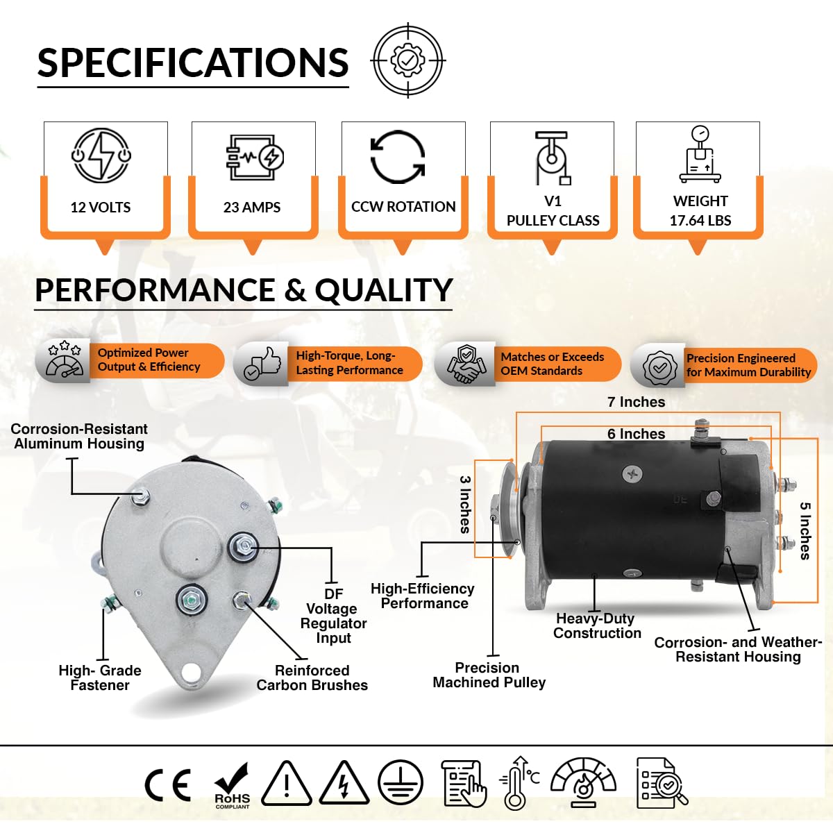 12V Starter Generator Compatible with EZ GO Golf Cart GXI875 GXT Medalist MG2 TXT 114014010 GSB107-10B GSB107-10C 25533-G01 2699