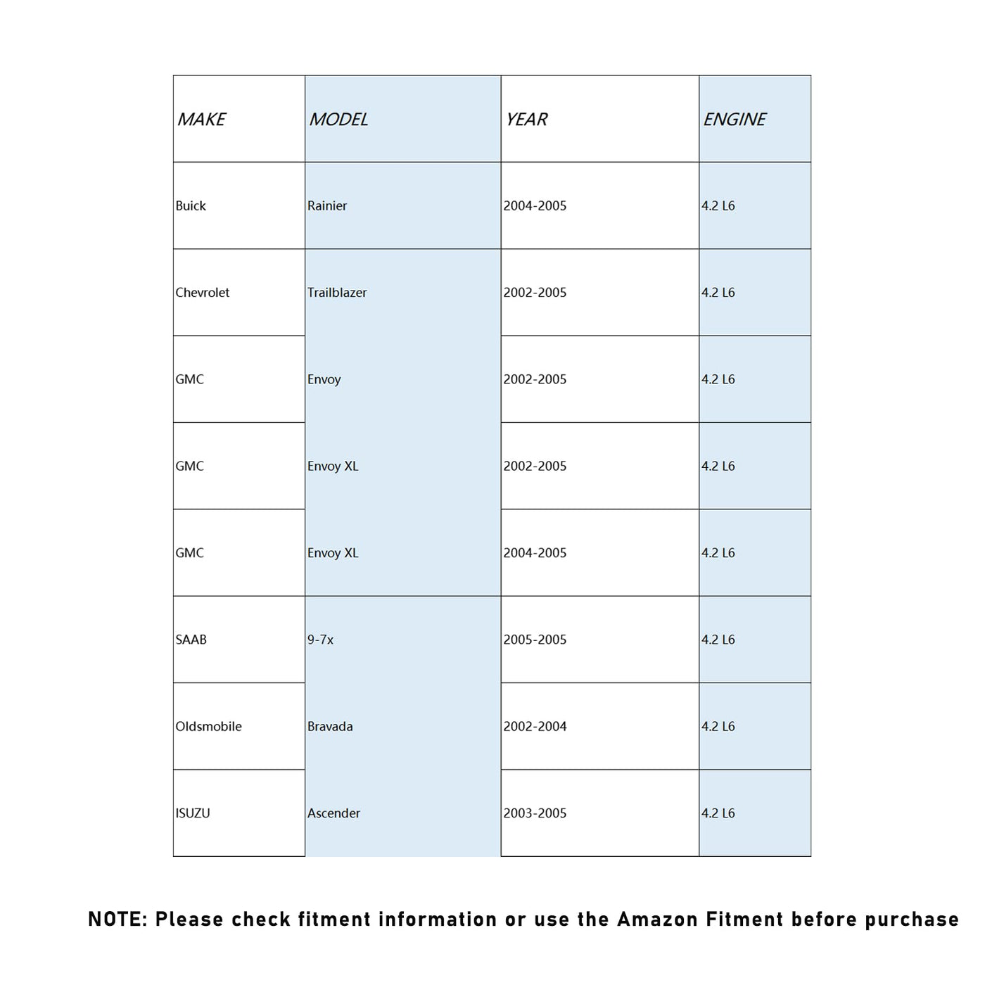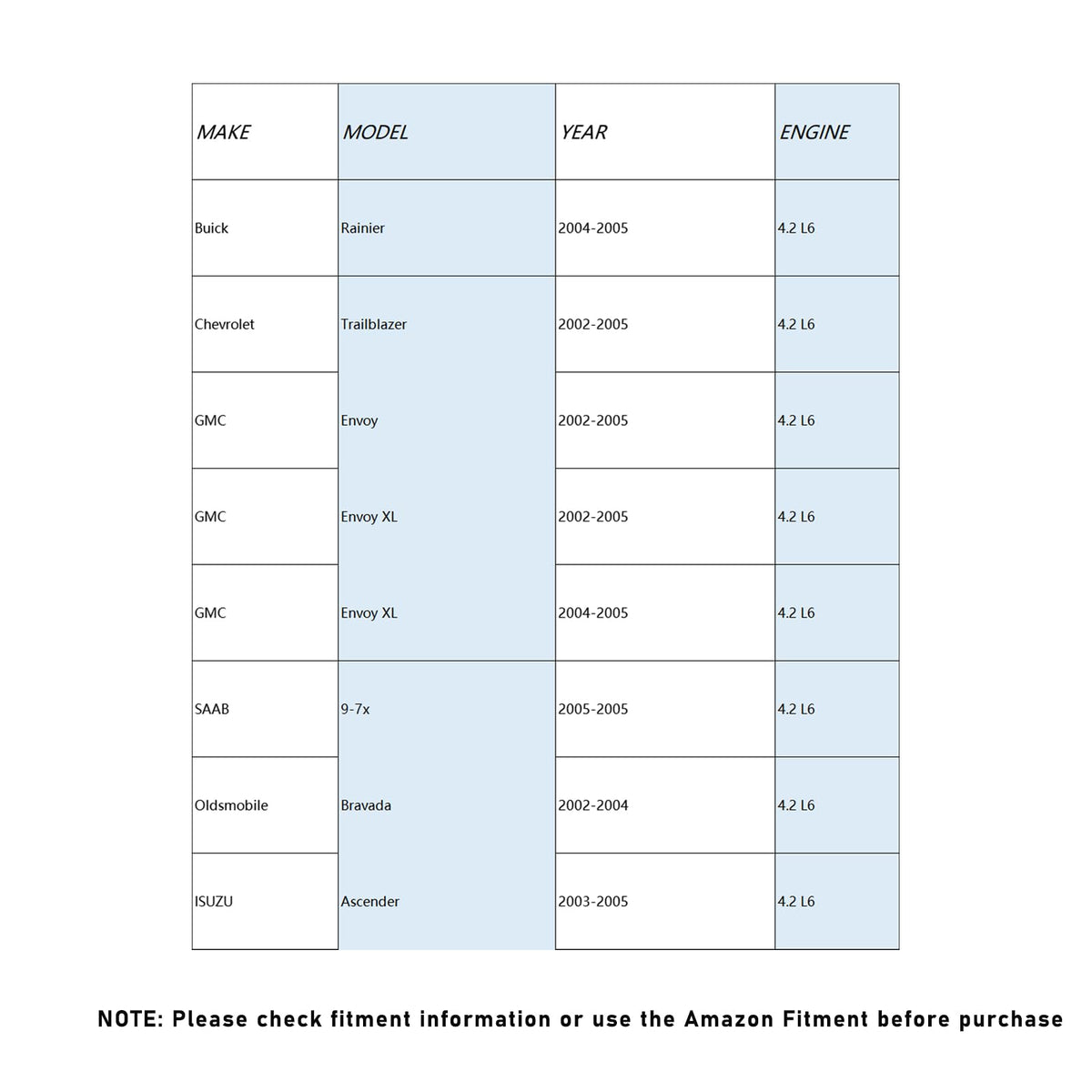 Q: What vehicles is this alternator compatible with?A: This alternator is compatible with 2002-2005 GMC Envoy, 2004-2005 Envoy XL XUV, 2002-2005 Chevrolet Trailblazer, 2004-2005 Buick Rainier, and 2002-2004 Oldsmobile Bravada.