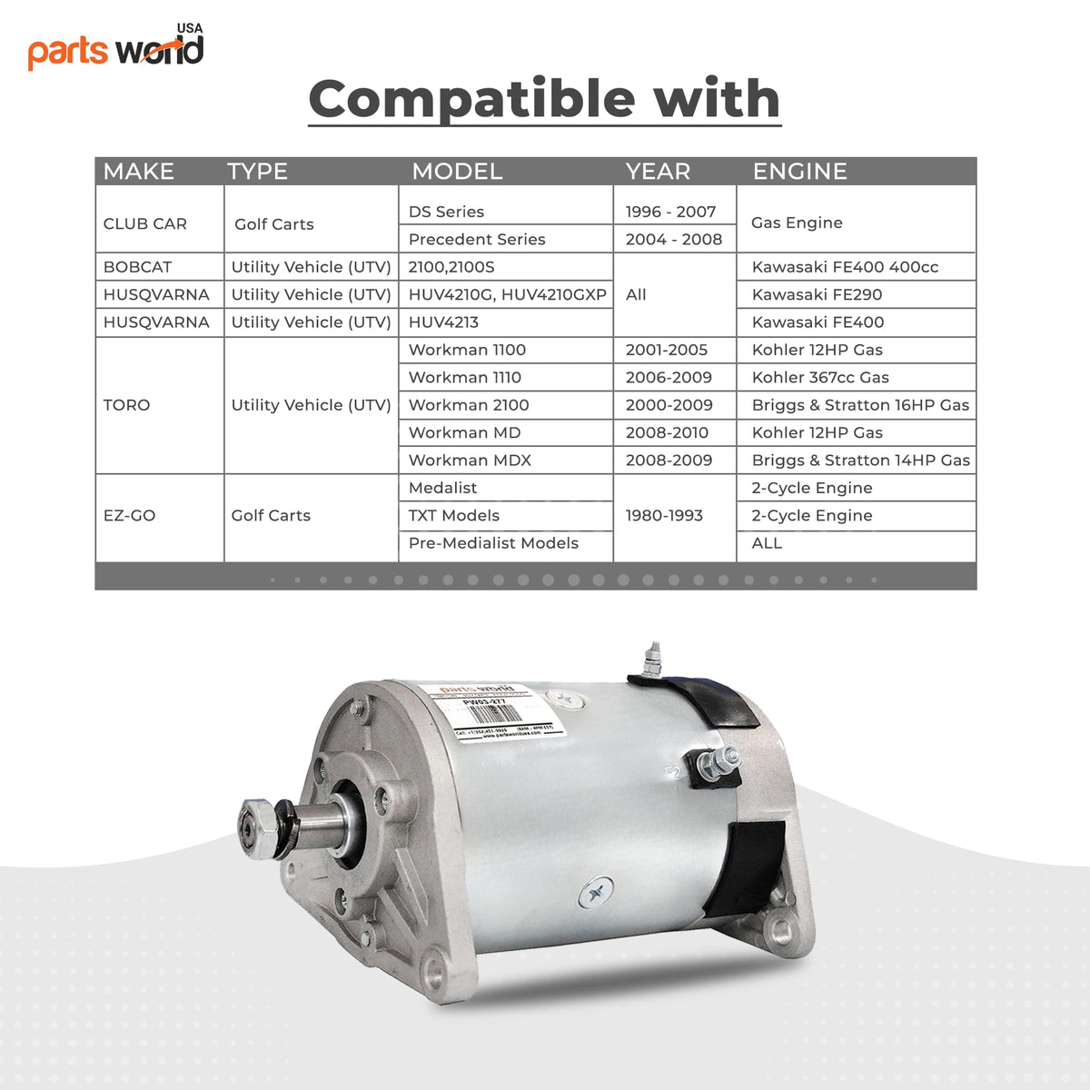 PARTS WORLD USA 12V Starter Generator for Club Car DS 1996-2007 Golf Cart | EZ-GO Golf Cart TXT Models 1980-1993|1018337-01 1018