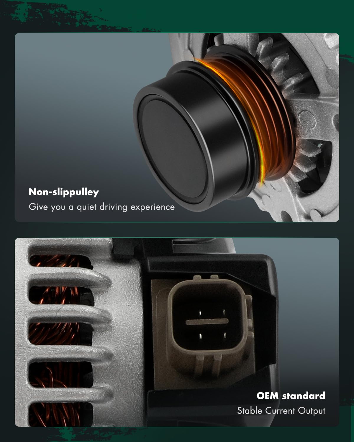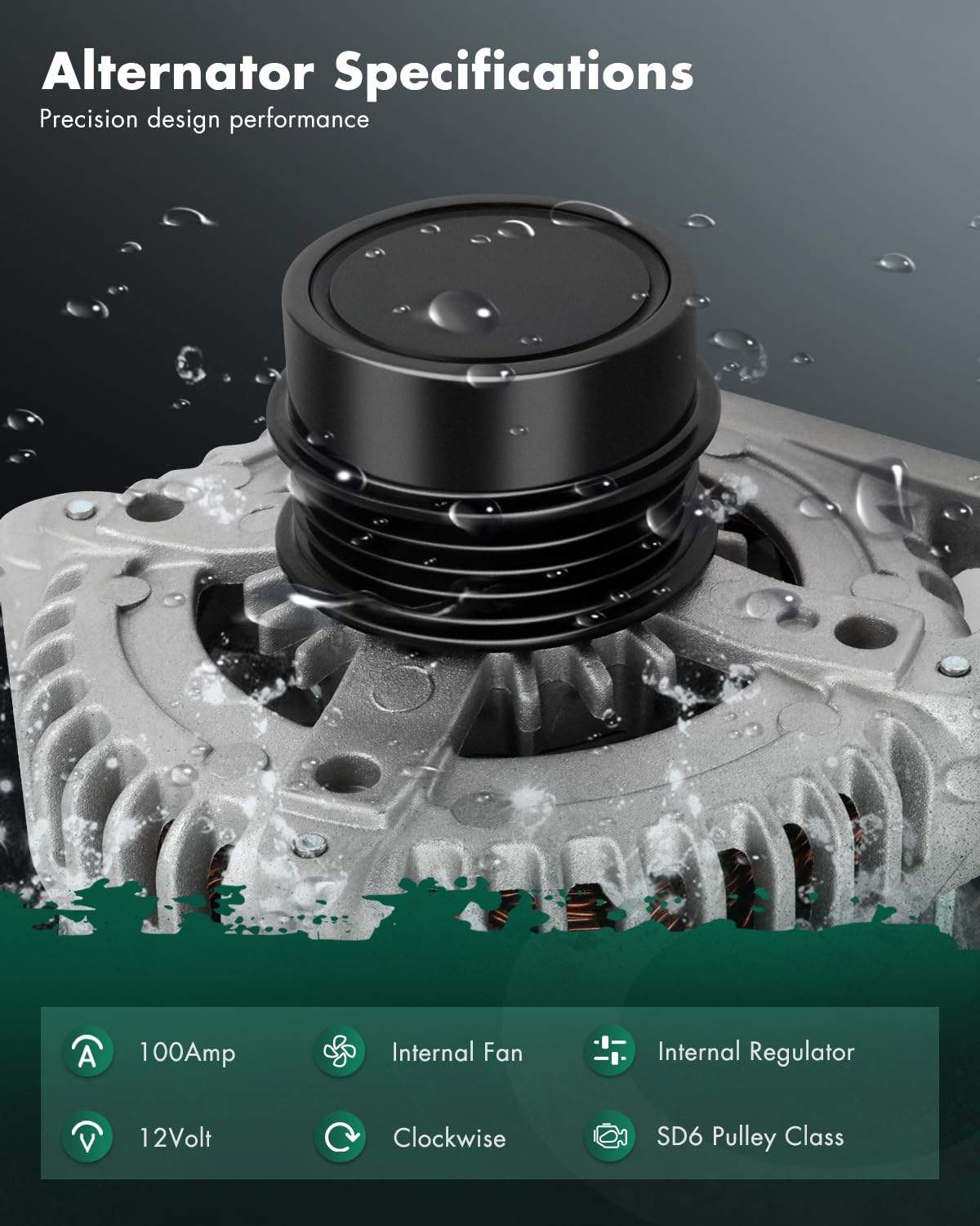 ?Alternator Fitment?- Automotive new alternator replacement for Scion for tC 2.5L 2011,for Scion for tC 2.5L 2012,for Scion for tC 2.5L 2013,for Scion for tC 2.5L 2014,for Scion for tC 2.5L 2015,for Scion for tC 2.5L 2016,for Toyota for Camry 2.5L 2012,for Toyota for Camry 2.5L 2013,for Toyota for Camry 2.5L 2014,for Toyota for Camry 2.5L 2015,for Toyota for RAV4 2.5L 2009,for Toyota for RAV4 2.5L 2010,for Toyota for RAV4 2.5L 2011,for Toyota for RAV4 2.5L 2012 | ?High-Performance Specifications? - Engineered with Voltage: 12V; Amperage: 100Amp; Rotation: CW (Clockwise); Regulator: IR (Internal Regulator) ; Fan: IF (Internal Fan); Grooves: SD6 Pulley Class; Condition: New, high output alternator is compact and lightweight, fully compatible with the electronic system of your vehicle, this automotive replacement alternator delivers reliable power for your car, it