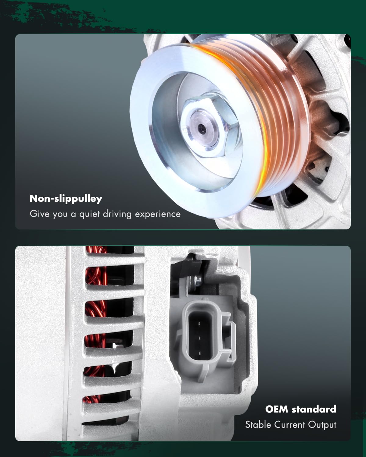 ??Compatibility - New alternator replacement for Dodge Dakota 1999 5.2L 1999-2000 3.9L/5.9L For Durango 1999 3.9L 1999-2000 5.2L/5.9L For Ram 1500 1999-2000 3.9L/5.2L/5.9L | ??Alternator Specifications - Unit Type:Alternator;Voltage:12;Rotation:CW;Amperage:136;Pulley Class:S7;Regulator:ER;ARROWHEAD:AND0129;CARGO:113364;J N:400-52045; :13824;NSA:ALT-6102;WAI:1-2227-02ND,13824N, high output alternator is compact and lightweight, fully compatible with the equipment system of your vehicle. | ??Alternator OEM - Direct OEM replacement for your malfunctioning part, OE number - 13824, AND0129, 113364, 05104763AA, 5104763AA, 56027913AB, 56027913AC, 56028920AA, 121000-4290, 121000-4291, 121000-4350, 121000-4351, 400-52045, ALT-6102, 1-2227-02ND, 13824N | ??Premium Alternators - Automotive replacement alternators throught precision CNC machined castings, increased output and additional provisions for cooling: Internal Fan; that reduce stress on the alternator and increase its life expectancy for a more reliable driving experience? | ??Reliable Alternator Replacement - Bearing 100% tested to OE standards and repacked with OEM grade lubricant. All dimensions, key mounting surfaces, and contact points are gauged and measured for proper fit. Throught igorous and accelerated cycling tests to ensure the quality and durability of product.