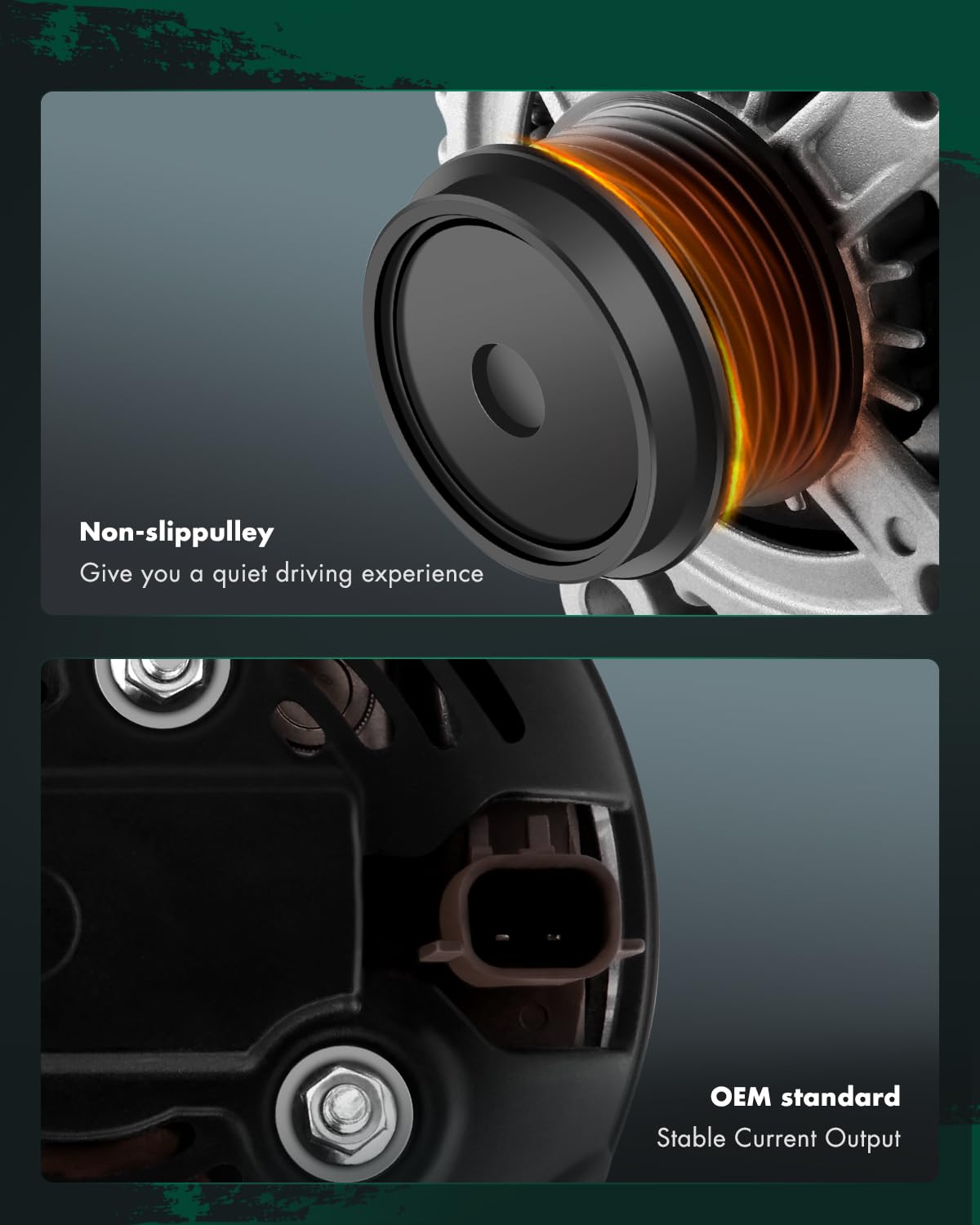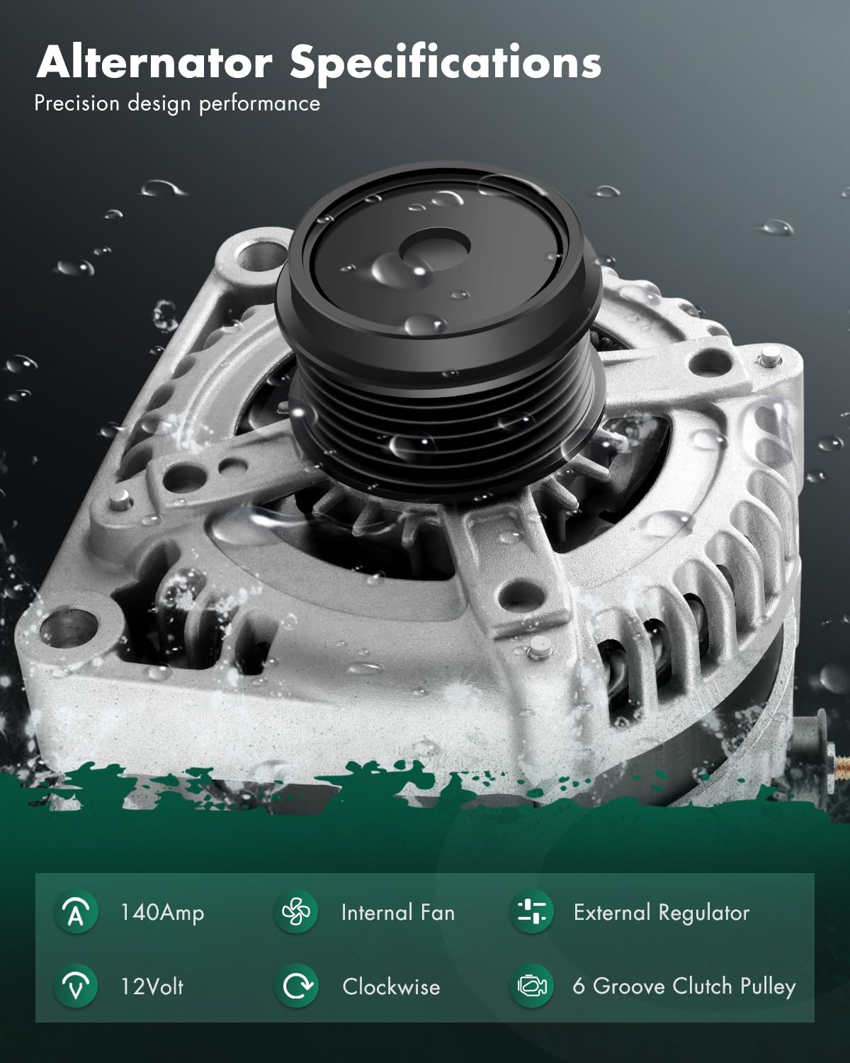 ?Alternator Fitment?- Automotive new alternator replacement for Chrysler Town & Country 2001-2007 V6 3.3L V6 3.8L, Voyager 2001-2003 V6 3.3L; for Dodge Caravan 2001-2007 V6 3.3L, Grand Caravan 2001-2007 V6 3.3L V6 3.8L | ?Alternators Specifications?- Voltage: 12V; Amperage: 140A; Rotation: CW(Clockwise); Regulator: ER ; Fan: IF; Grooves: 6 Groove Clutch Pulley; Condition: New, high output alternator is compact and lightweight, fully compatible with the electronic system of your vehicle | ?Car Alternator Reference Number?- Direct OEM replacement for your malfunctioning part, OE number : 13871 3341406 AND0293 VND0293 04868431AF 04868431AG 4868431AB 4868431AC 4868431AD 4868431AF 4868431AG 421000-0011 421000-0012 421000-0013 421000-0222 421000-0223 421000-0225 400-52256R 13871 VDN11360901-A 1-2505-01ND-3 13871N | ?Easy Installation?- (1) Be sure to disconnect the negative electrode of the battery; (2) When replacing, pay attention to the appropriate tension of the transmission belt: if too loose, it may slip and cause insufficient power generation; If too tight, it can easily damage the belt and alternator bearings; (3) When replacing, pay attention to tightening all screws. If you have any problems during use, then get in touch with us, we will supply you with professional technical support | ?Note?SCITOO Auto supply alternator for most cars, SUVs, trucks and trailers. Please select your vehicle (year/make/model/trim) in the top left corner of the page to confirm compatibility or refer to the vehicle information in the description