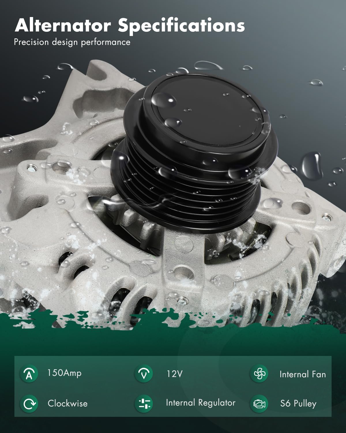 SCITOO Alternator Fit for Ford Mustang 2009-2010 4.6L, Manual Transmission - 12V 150Amp CW S6 Pulley Class, Replace OE 11526 104