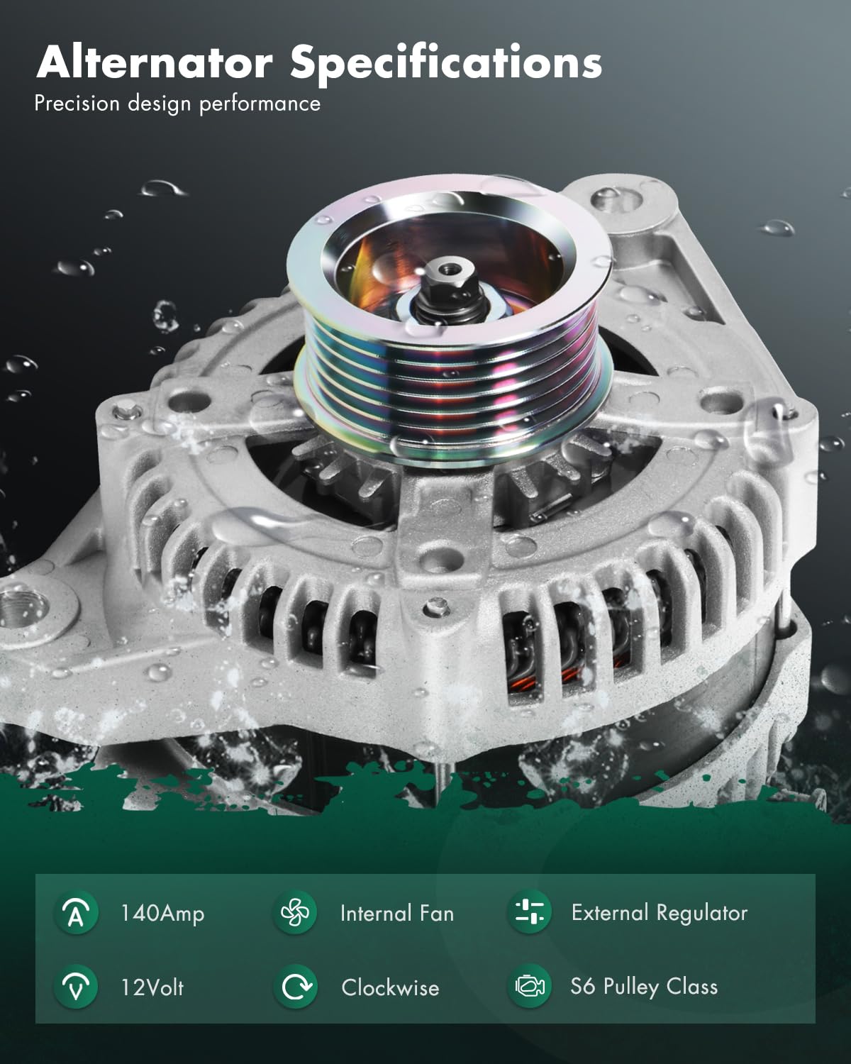 ?Alternator Fitment?- Automotive new alternator replacement for Dodge for Nitro 3.7L 2011,for Dodge for Nitro 4.0L 2011,for Jeep for Liberty 3.7L 2010,for Jeep for Liberty 3.7L 2011,for Jeep for Liberty 3.7L 2012 | ?Alternators Specifications?- Voltage: 12V; Amperage: 140A; Rotation: CW(Clockwise); Regulator: ER ; Fan: IF; Grooves: S6 Pulley Class; Condition: New, high output alternator is compact and lightweight, fully compatible with the electronic system of your vehicle | ?Car Alternator Reference Number?- Direct OEM replacement for your malfunctioning part, OE number : 11504 421000-0780 11240 | ?Easy Installation?- (1) Be sure to disconnect the negative electrode of the battery; (2) When replacing, pay attention to the appropriate tension of the transmission belt: if too loose, it may slip and cause insufficient power generation; If too tight, it can easily damage the belt and alternator bearings; (3) When replacing, pay attention to tightening all screws. If you have any problems during use, then get in touch with us, we will supply you with professional technical support | ?Note?SCITOO Auto supply alternator for most cars, SUVs, trucks and trailers. Please select your vehicle (year/make/model/trim) in the top left corner of the page to confirm compatibility or refer to the vehicle information in the description