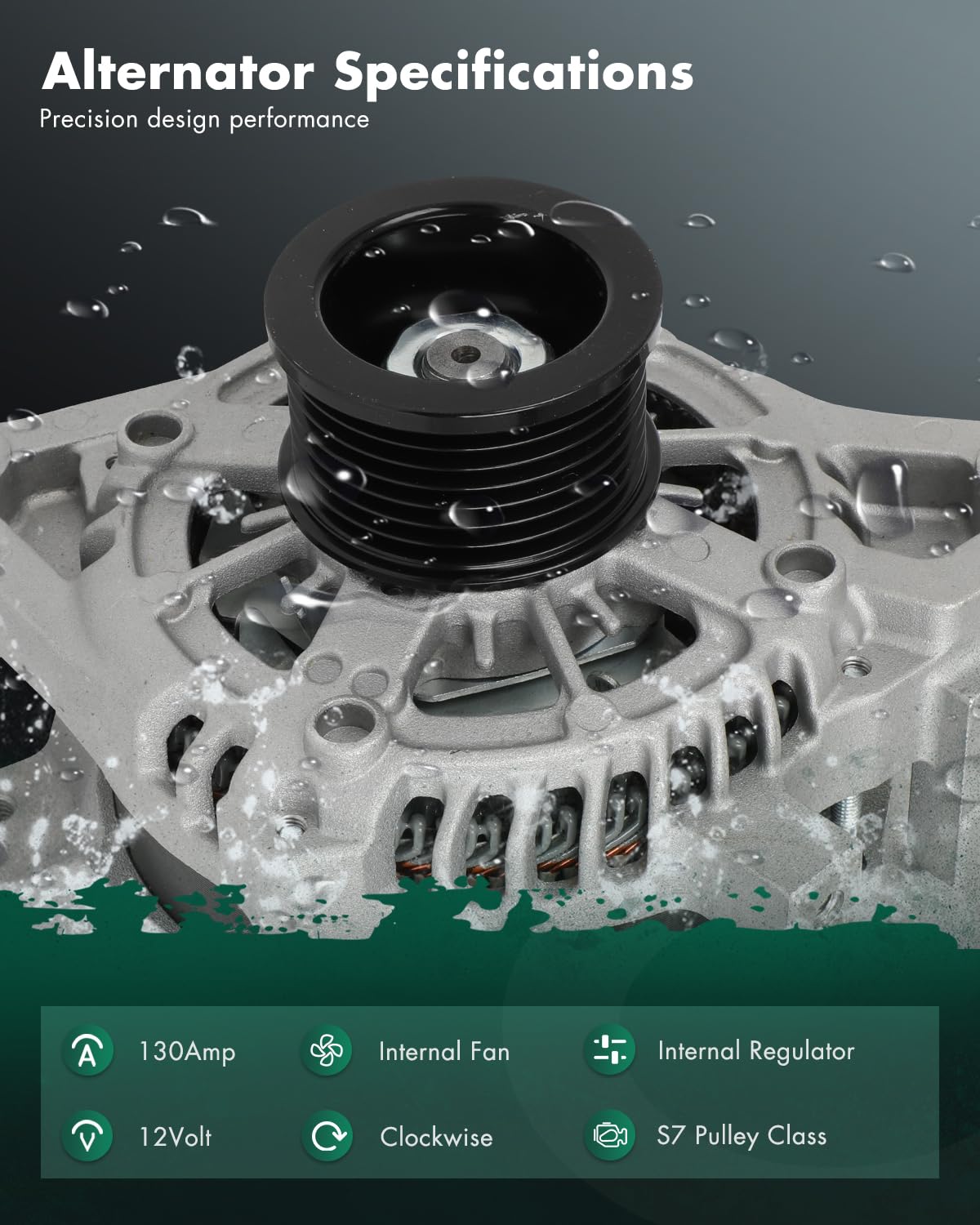 ?Alternator Fitment?- Automotive new alternator replacement for Toyota for Tacoma 3.5L 2016,for Toyota for Tacoma 3.5L 2017,for Toyota for Tacoma 3.5L 2018,for Toyota for Tacoma 3.5L 2019,for Toyota for Tacoma 3.5L 2020,for Toyota for Tacoma 3.5L 2021 | ?High-Performance Specifications? - Engineered with Voltage: 12V; Amperage: 130Amp; Rotation: CW (Clockwise); Regulator: IR (Internal Regulator) ; Fan: IF (Internal Fan); Grooves: S7 Pulley Class; Condition: New, high output alternator is compact and lightweight, fully compatible with the electronic system of your vehicle, this automotive replacement alternator delivers reliable power for your car, it