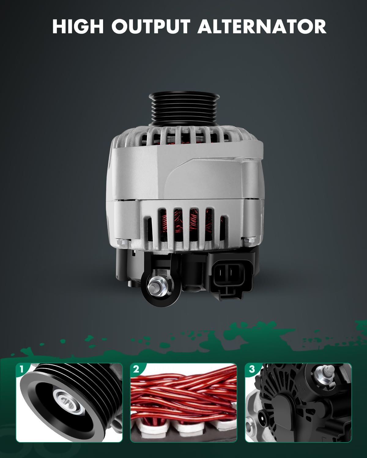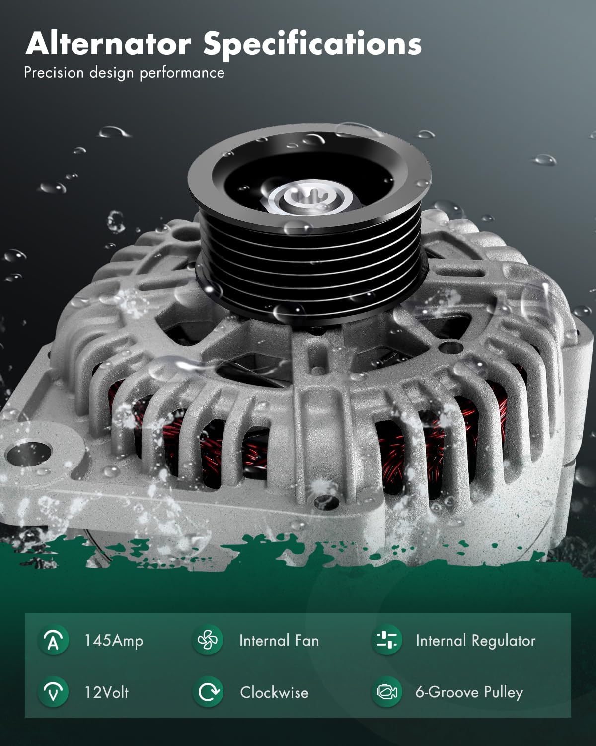 ?Alternator Fitment?- Automotive new alternator replacement for Nissan for Quest 3.5L 2004,for Nissan for Quest 3.5L 2005,for Nissan for Quest 3.5L 2006,for Nissan for Quest 3.5L 2007,for Nissan for Quest 3.5L 2008,for Nissan for Quest 3.5L 2009 | ?High-Performance Specifications? - Engineered with Voltage: 12V; Amperage: 145Amp; Rotation: CW (Clockwise); Regulator: IR (Internal Regulator) ; Fan: IF (Internal Fan); Grooves: 6-Groove Pulley; Condition: New, high output alternator is compact and lightweight, fully compatible with the electronic system of your vehicle, this automotive replacement alternator delivers reliable power for your car, it